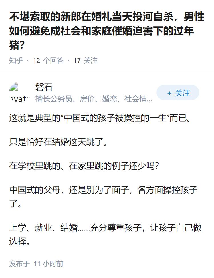 不堪索取的新郎在婚礼当天投河自杀,男性如何避免成社会和家庭催婚迫害下的过年猪?