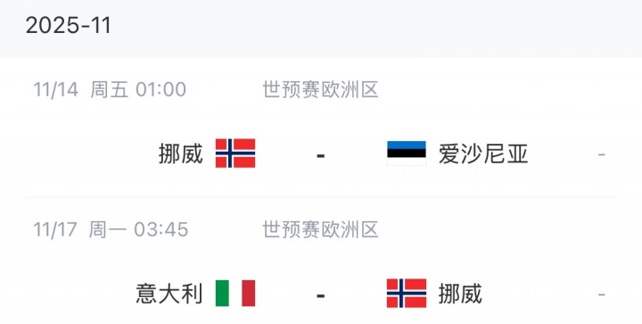 挪威剩余赛程:
