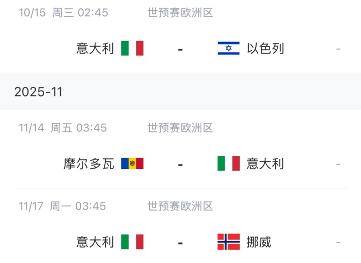 意大利剩余赛程: