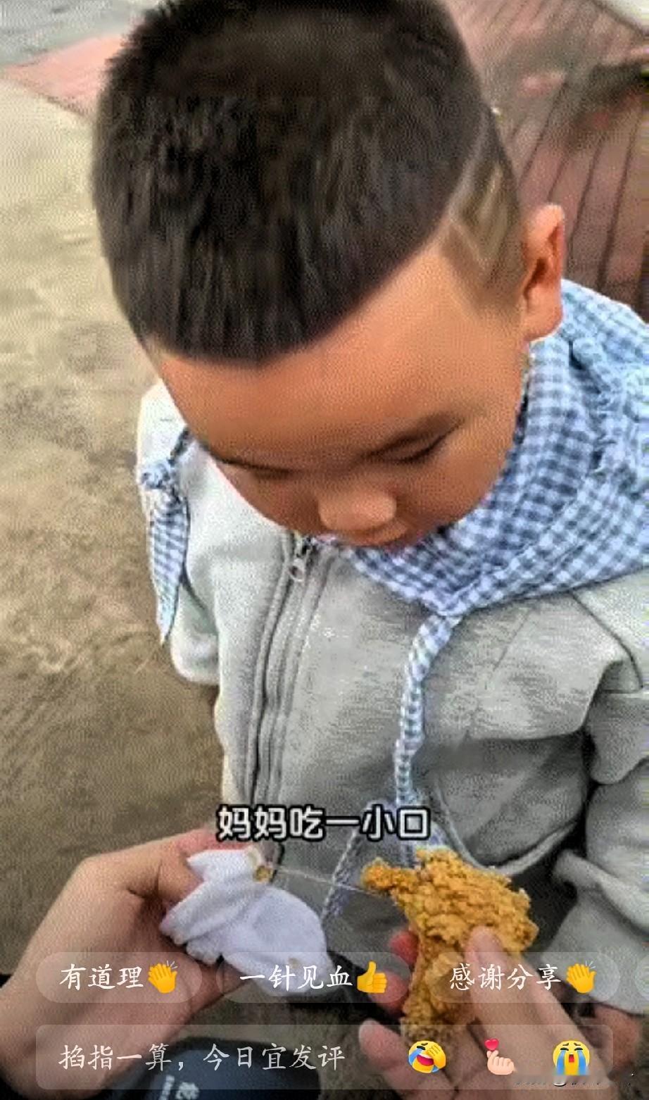 “太感动了!”,傍晚的幼儿园门口,一对夫妻刚停下脚步,3岁儿子就背着小书包飞奔过来,不等爸妈开口,直接把书包往地上一放,蹲在地上翻找起来。 看着孩子着急的样子,夫妻俩还以为他在幼儿园受了委屈,正想安慰,就见孩子掏出一个袜子 爸爸纳闷地接过袜子,入手的温热感让他愣了一下,翻开袜口一看,里面竟然躺着个还冒着热气的脆皮鸡腿!“这是幼儿园发的点心,我没舍得吃!”孩子仰着小脸,小手紧紧抓着爸爸的衣角,小奶音里满是期待,“妈妈最喜欢吃这个,先给妈妈!” 妈妈接过鸡腿时,眼眶瞬间就热了。爸爸笑着把鸡腿掰成两半,夫妻俩先各咬了一口,又把剩下的肉仔细撕成小块,喂给眼巴巴的儿子。没有嫌弃袜子装过的不卫生,也没有念叨“脏”,只有一家三口分享美食时的欢声笑语。 网友说得太戳心了:养娃不是为了他多出色,而是为了这些突如其来的小温暖。孩子不懂什么是贵重,只知道把最爱的东西留给最亲的人;父母也用最包容的态度,接住了这份笨拙又纯粹的爱。 这只藏在袜子里的鸡腿,装的哪里是食物,分明是孩子满满的心意。你家娃有没有做过这种让你心头一暖的小事?