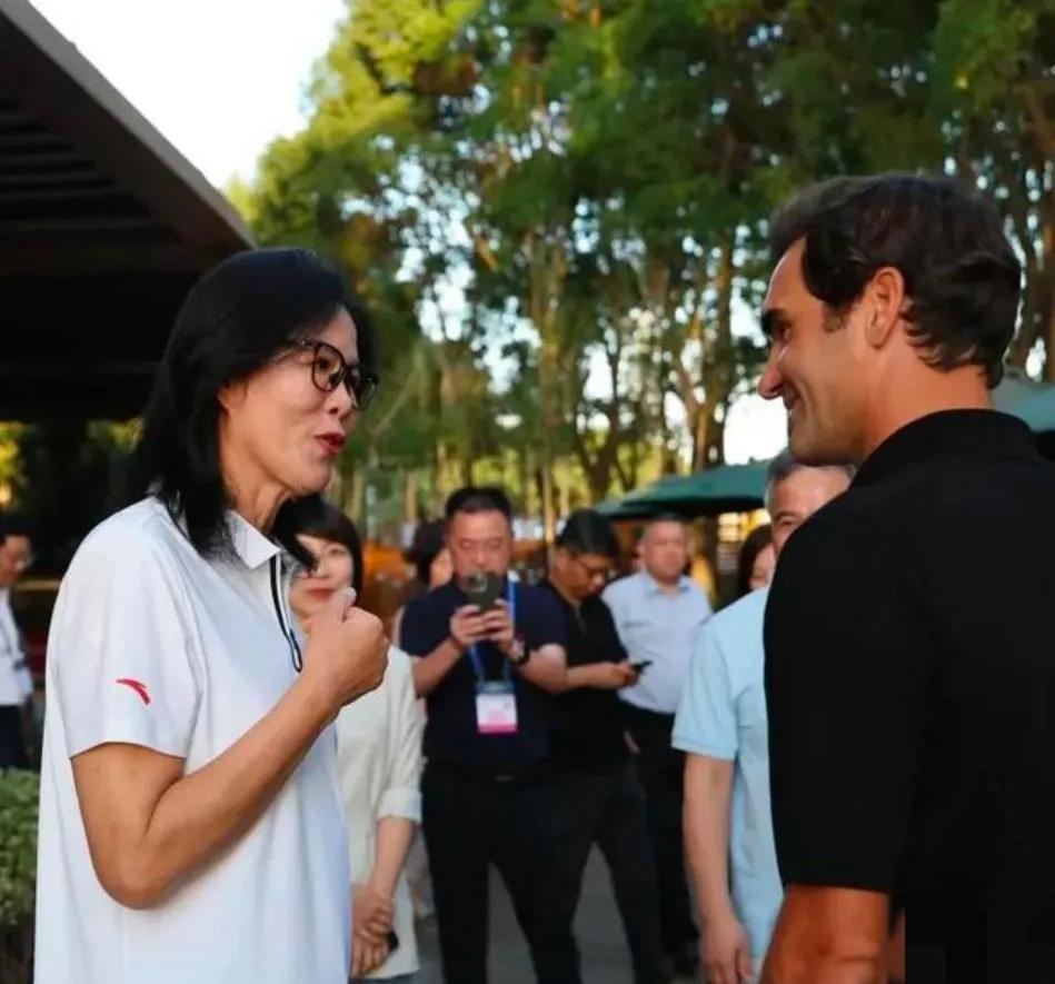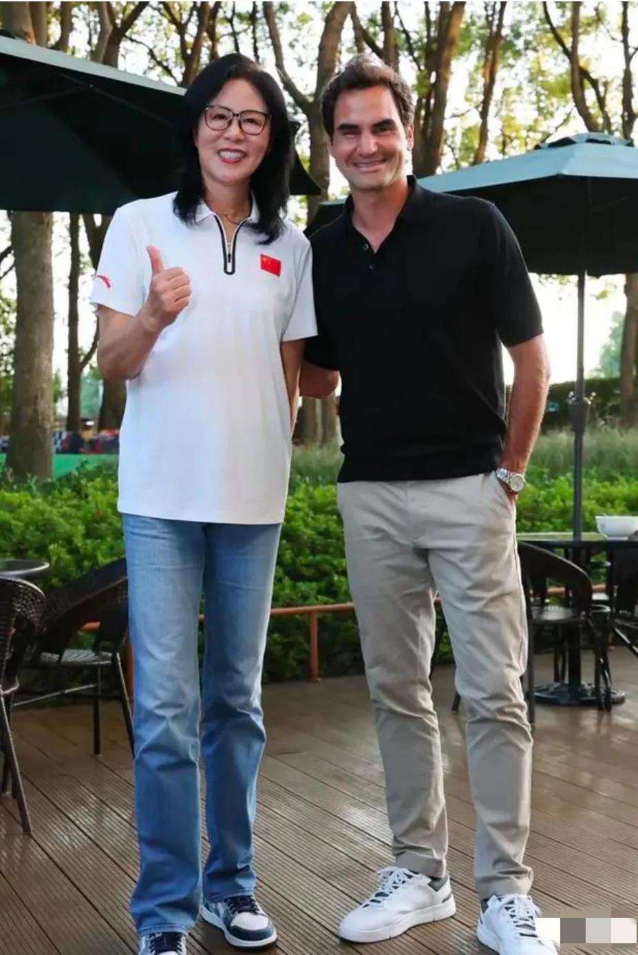 65岁的郎平与44岁的费德勒在上海街头偶遇:没想到胖瘦合度,知性优雅的郎导竟然比帅气的网球天王还要高一些,两位体坛精英的合照真是餍心悦目哈!
