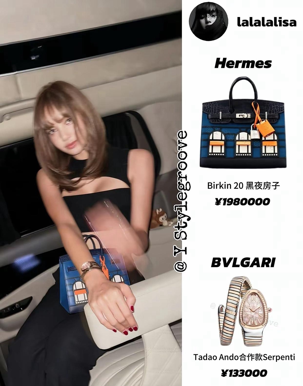 Lisa带着她的爱马仕蓝房子出镜了。lv代言是工作,爱马仕才是生活