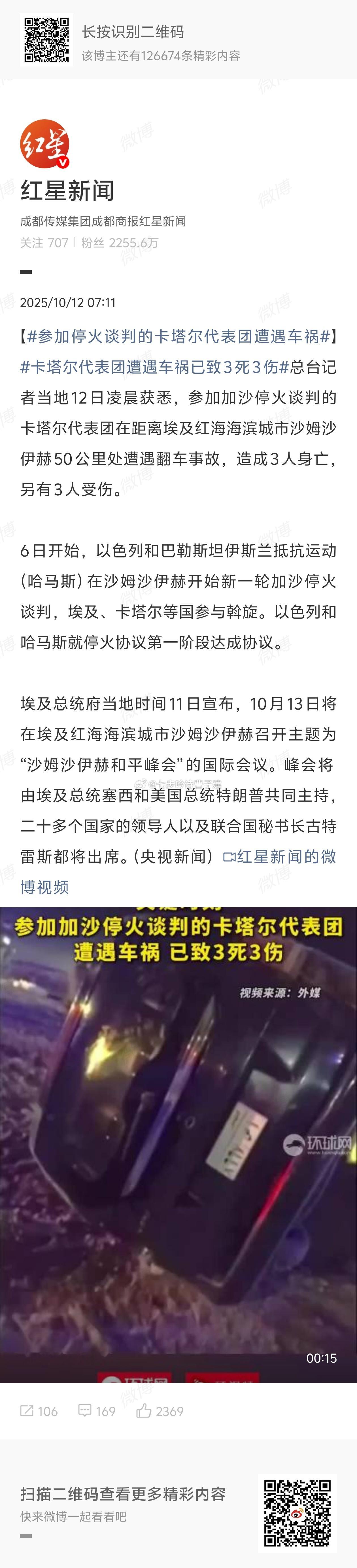 卡塔尔代表团遭遇车祸已致3死3伤谁干的呢,好难猜哦🙄