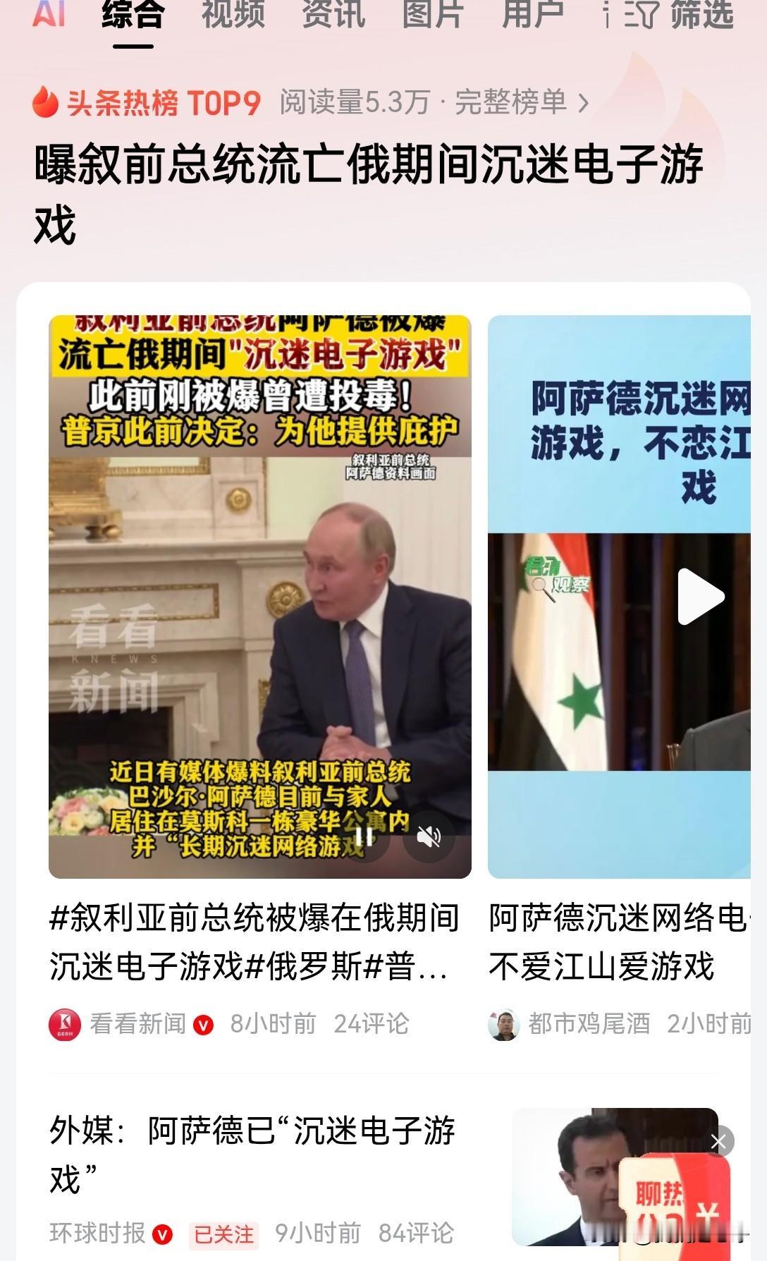 这条新闻很多人好像没有看懂。大家千万不要忘了巴沙尔阿萨德刚刚遭到过投毒。 很多势力都希望他死! 这个时候他是不能展现出雄才大略的! 咱们中国人都应该明白什么叫做乐不思蜀! 您真的以为那是乐不思蜀吗? 那是最顶级的自保战略! 西方人根本就看不懂这个计策,不懂中国文化的人,估计看巴萨阿萨德就像傻子一样。 大家想想,沉迷电子游戏总比沉迷于大麻要好吧? 现在的阿萨德最好还是让别人嘲笑一下! 当他现在变成了一个笑话,那他活下去的可能就大了三分! 咱们中国人懂的都懂!