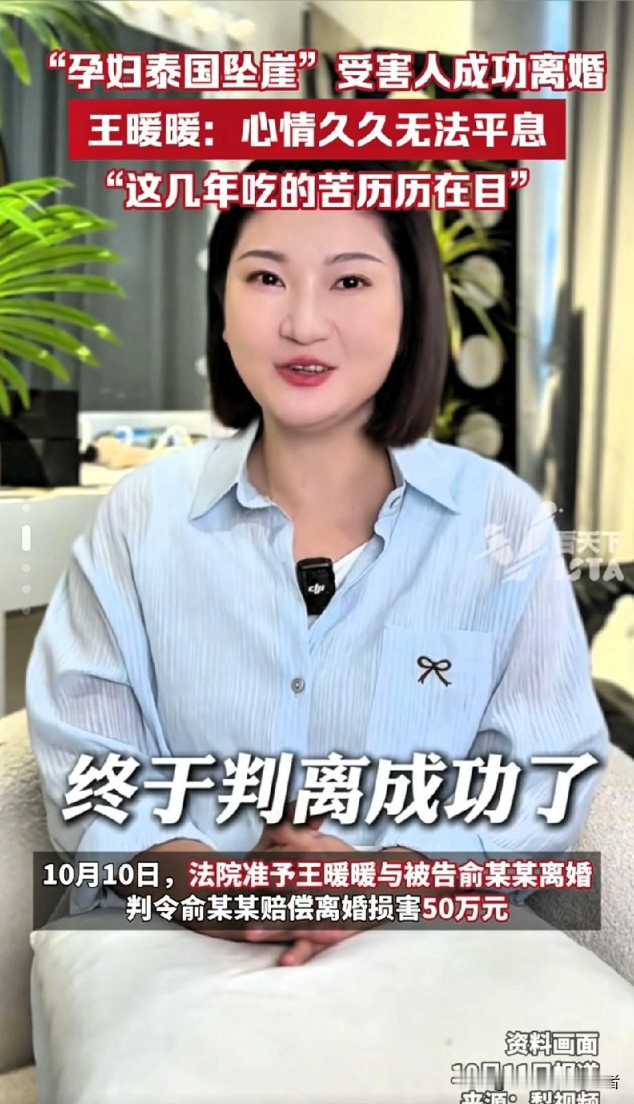 她等这场离婚,等了整整六年。 还记得泰国悬崖下那个奇迹生还的孕妇吗?她叫王暖暖。今天,法院一纸判决,终于斩断了她和杀人恶魔的婚姻。 “我不能再和想杀我的人绑在一起。”简单一句话,背后是她2000多个日夜的煎熬。 2019年,怀有身孕的她,被丈夫亲手推下34米悬崖。全身17处骨折,缝合200多针,在异国荒郊靠求生的本能呼救。而推她下去的那个人,事后还在冷静地演戏。 这六年,她一边拖着伤残的身体复健,一边在中泰两国间为正义奔走。泰国的判决从无期改十年,她没放弃;离婚之路漫长,她没认命。 这50万赔偿,买不回她失去的一切,却是一个庄严的宣告:法律永远站在受害者这边。 如今,她终于能真正地重新开始了。这份判决书,是她用命换来的“重生证”。 请记住:离开想害你的人,是自救;勇敢地活下去,才是真正的胜利。 愿所有经历过黑暗的人,都能像她一样,在绝望中开出花来。