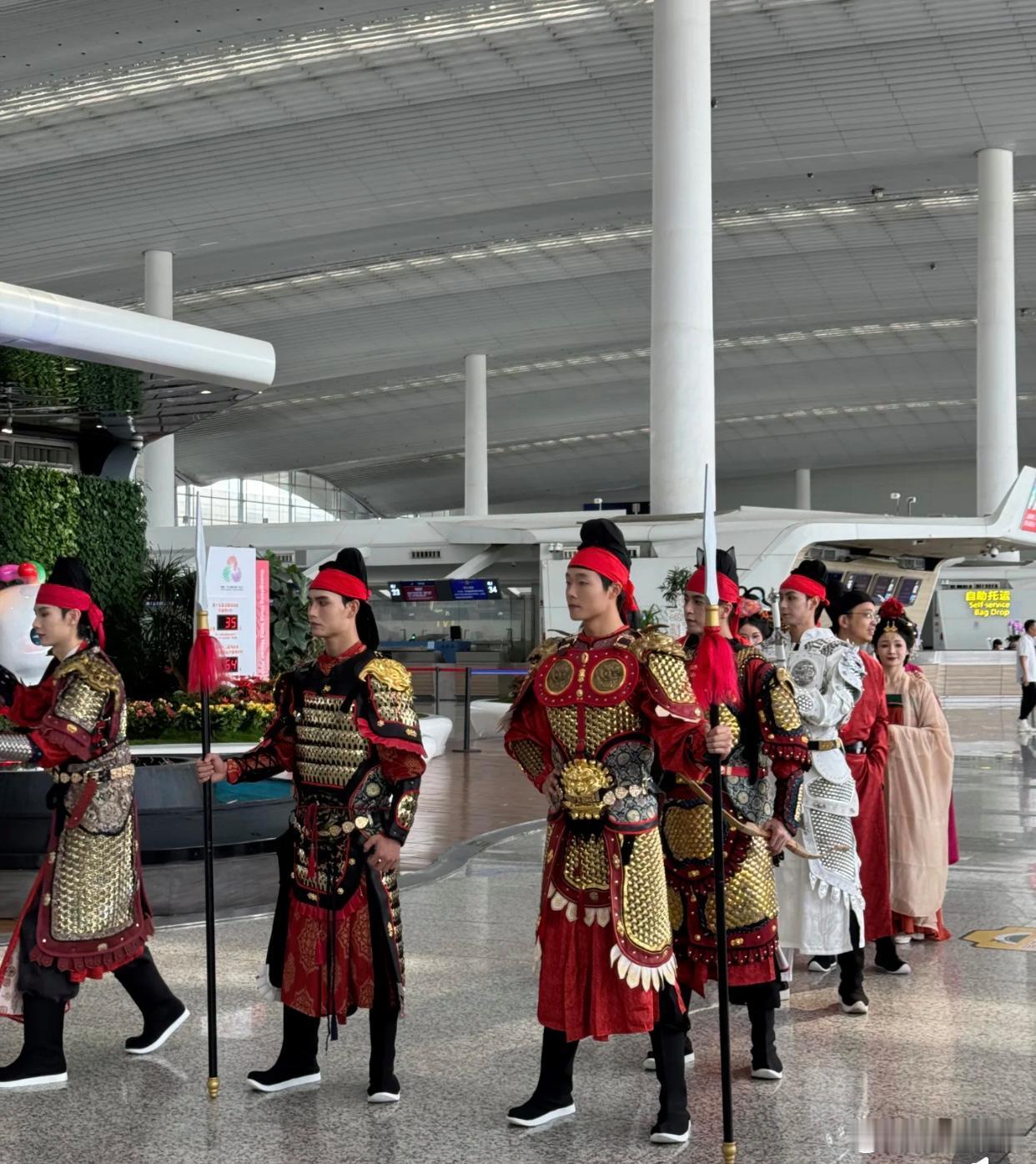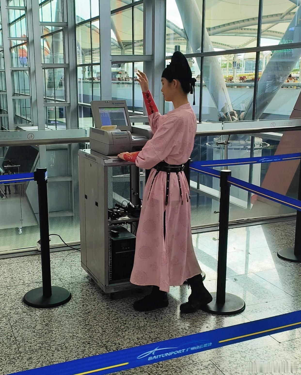 起猛了!在广州白云机场,我真以为自己穿越了!眼前全是穿着古装的工作人员——有戴着