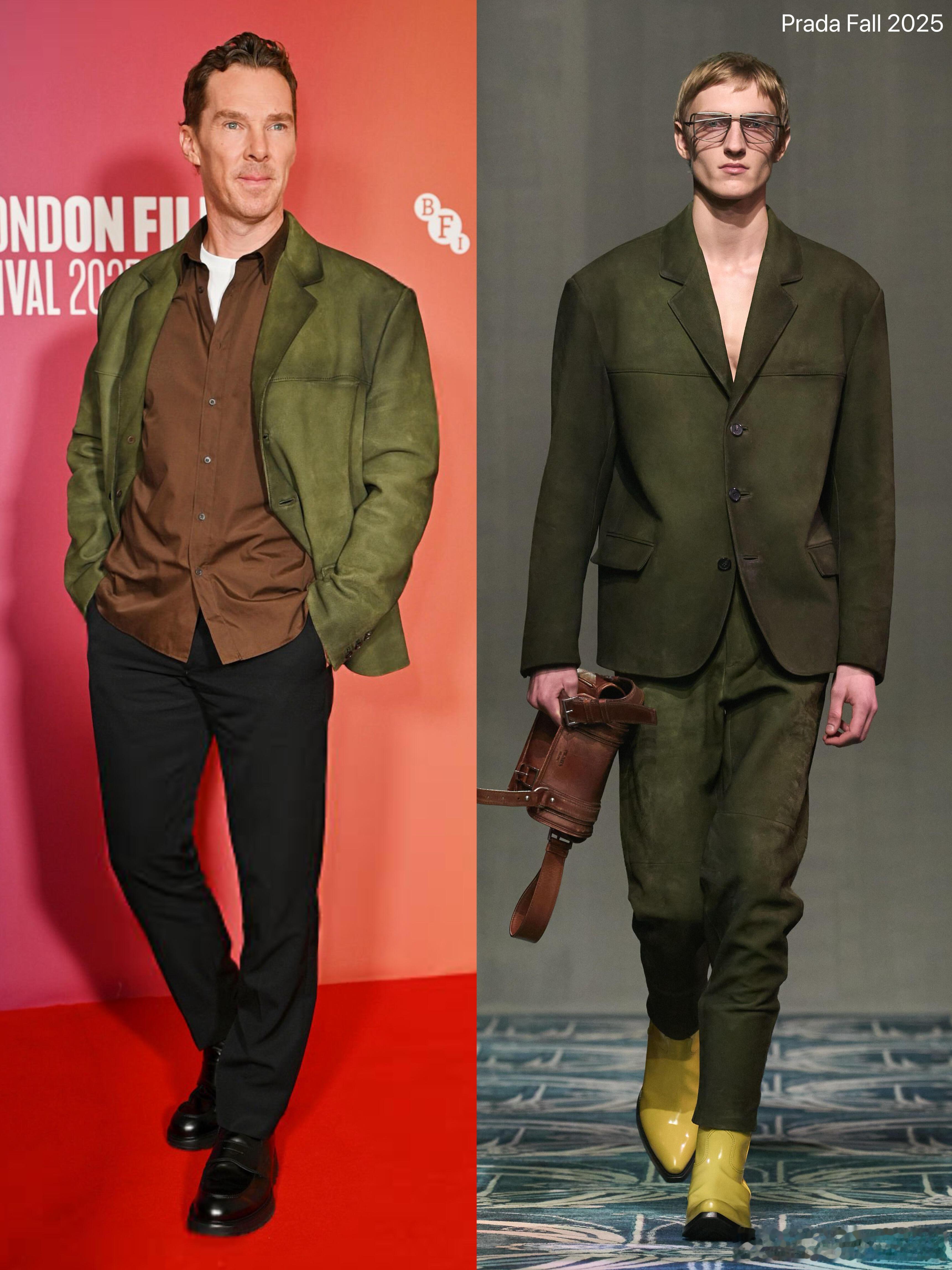 卷福与妻子 Sophie Hunter 亮相第69届英国电影协会伦敦电影节《长翅膀的东西》首映红毯,俩人都穿的Prada!