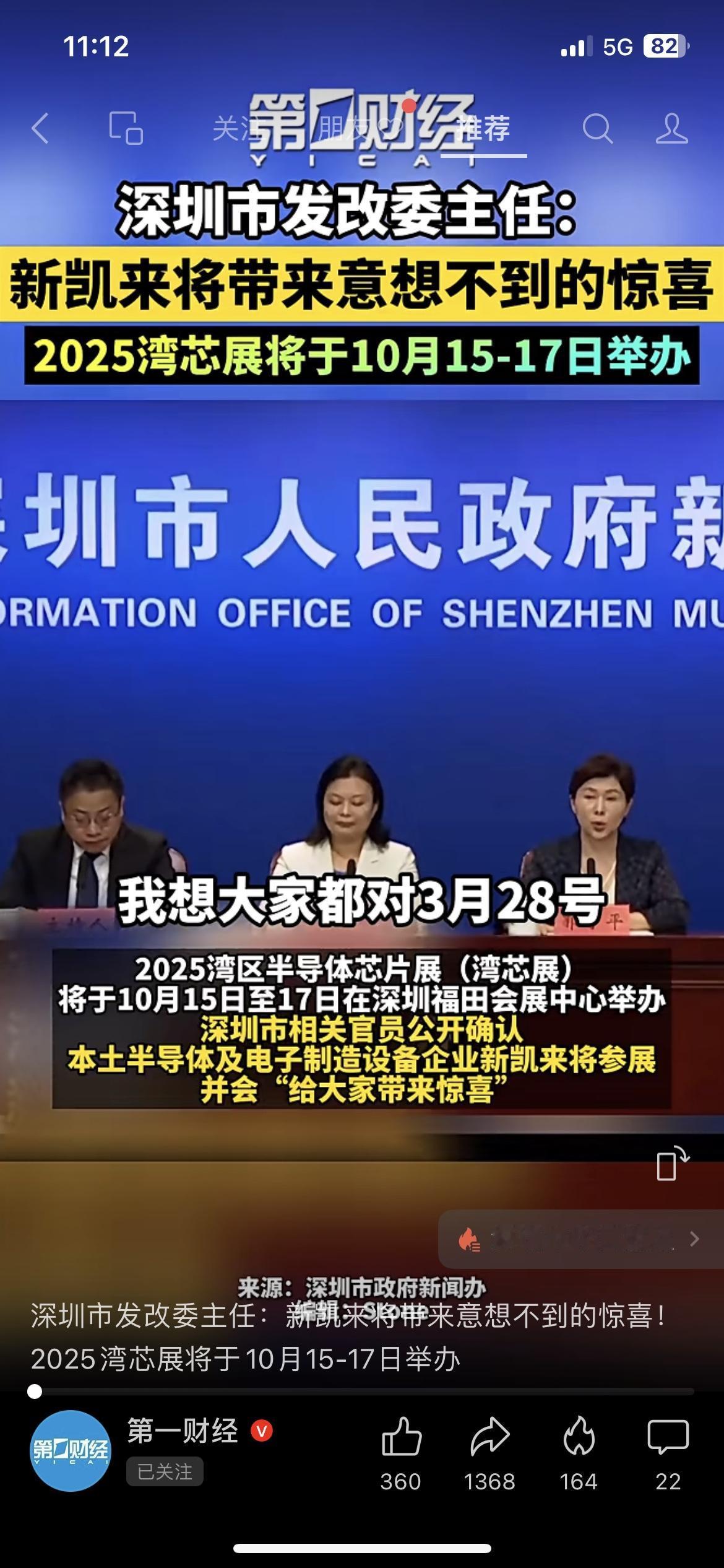 国产半导体放大招!深圳湾芯展藏“王炸”,新凯来的惊喜要改写行业格局? 深圳市发改委主任亲自站台,放话新凯来将在2025湾芯展(10月15-17日,深圳福田会展中心) 带来“意想不到的惊喜”!这波操作直接把半导体圈的期待值拉满—— • 硬货有多硬? 新凯来一口气亮出6大类31款半导体设备,从制造到检测全链路覆盖,据说有几款能正面PK国际巨头的“王牌产品”! • 展会有多猛? 作为大湾区半导体产业的“年度大秀”,湾芯展集结了上下游全产业链玩家,新凯来这波参展相当于把国产设备的“肌肉”直接摆到台面上。 要知道,半导体设备一直是咱们的“卡脖子”痛点,这次新凯来要是真甩出“王炸”,国产半导体的崛起节奏是不是要加速了?你觉得这波“惊喜”能让国产设备实现逆袭吗?新凯来半导体 新凯来半导体