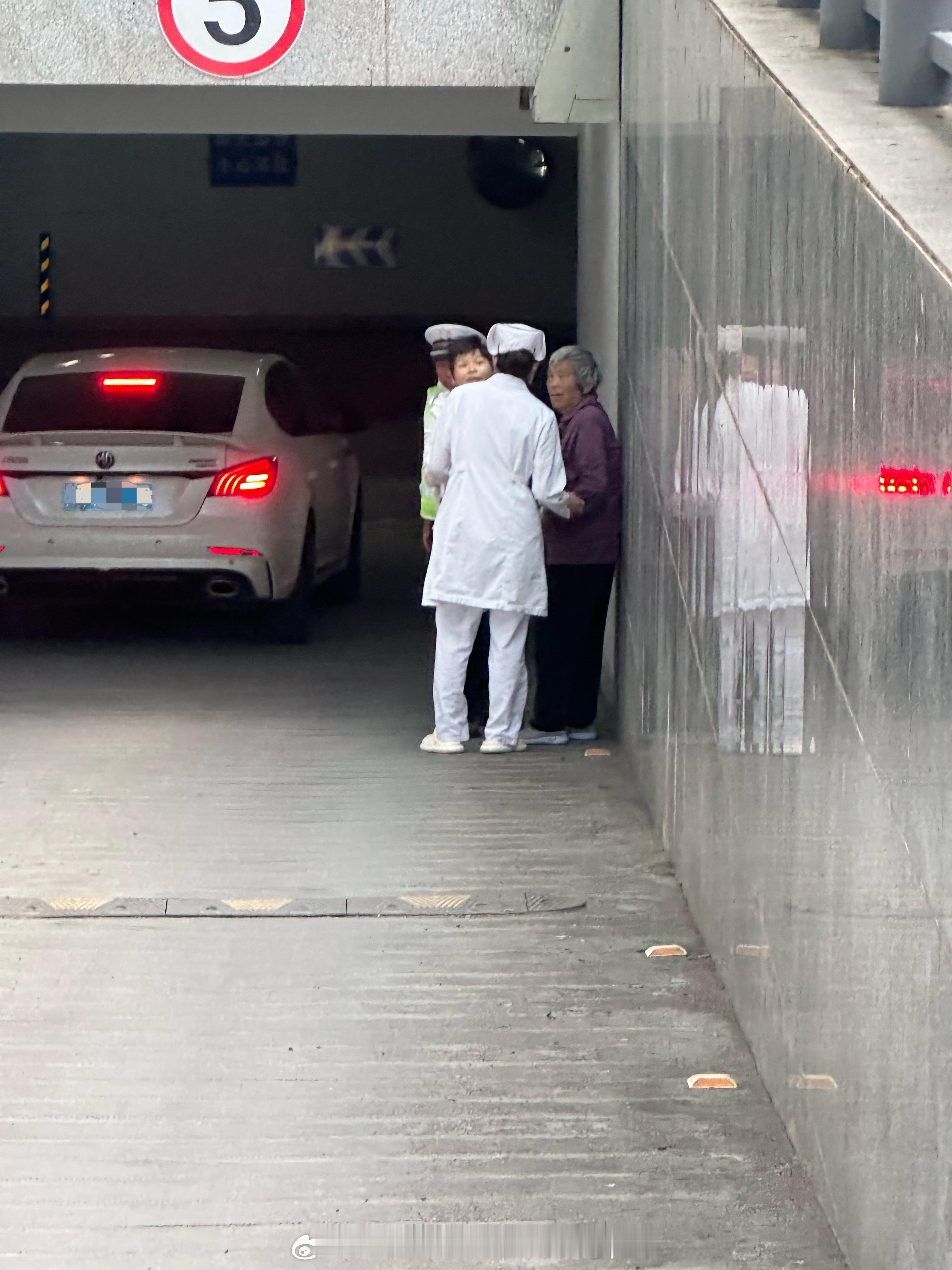 我周围还有两个老人围观,我立马让两个老人站在通道入口安全的地方先拦住要下去的车,然后迅速叫保安引导车辆避开这个通道,随后我跑到大楼导医台让护士推一个轮椅和我过去