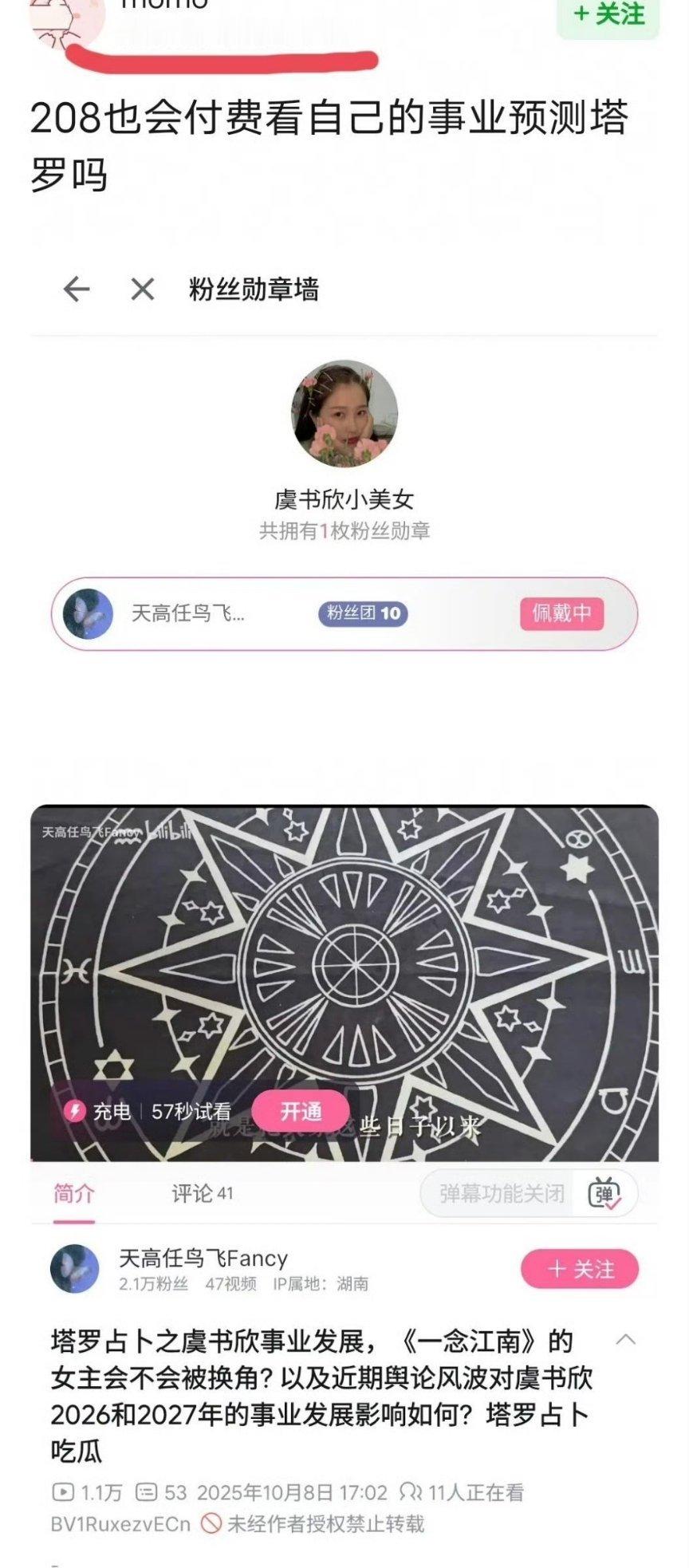 说是网友发现疑似虞书欣在b站付费观看自己的事业预测塔罗?