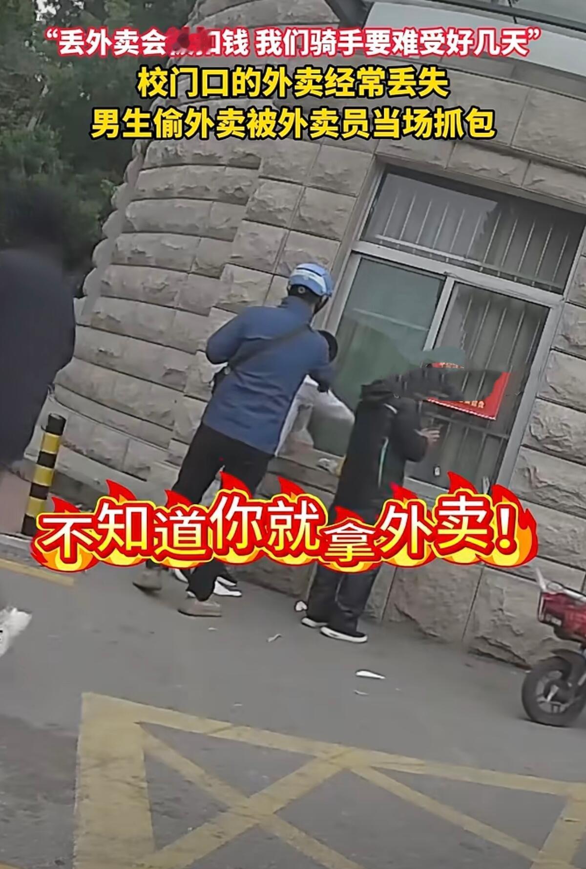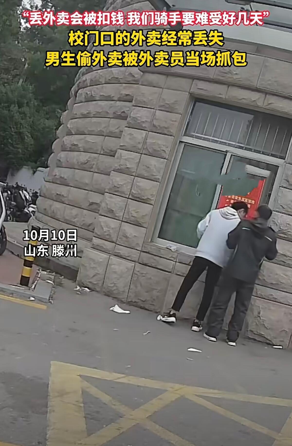 这事儿真是让人又气又无奈——山东滕州一所学校门口,外卖员张先生蹲了好几天,终于抓着个偷外卖的学生,直接扭送派出所了。 要我说,这些外卖员是真不容易。张师傅那句话扎心了:“丢一单罚50,我得在风里跑三单才挣得回来!”他们每天中午像打仗一样,把几十份外卖往校门口一放,拍个照就得赶紧奔下一家。就这转身的工夫,餐就没了。有人一周被偷三回,连生日蛋糕都丢过,孩子只能饿着肚子上课。 要我说,这偷外卖的学生是真不地道。你偷的不是饭,是人家风里来雨里去的血汗钱。张师傅这次特意跟订餐女生约好时间,就蹲在边上等着。果然,没五分钟就见个穿校服的男生,拿起外卖就往兜里揣。被拦住后还嘴硬,幸亏订餐的女生及时赶到,当场戳穿谎话。 送派出所得劲!民警说得在理:别看一份外卖不值钱,这就是偷窃。次数多了,金额够了,照样违法。现在好了,学校终于动了,安排志愿者看守,划了专门取餐区。要我说早该这么干了! 要我说,这事儿不能光怪学生。学校管理确实拉胯——外卖堆得跟小山似的,谁都能拿,这不就是考验人性吗?现在外卖员也学精了,贵重餐品宁可多等五分钟,非得亲眼看着学生取走才放心。 一份外卖照出人生百态。这孩子为了口吃的,脸都不要了;而外卖员为了讨生活,还得兼职破案。希望这次教训能让他记住:手别那么贱,做人要堂堂正正。