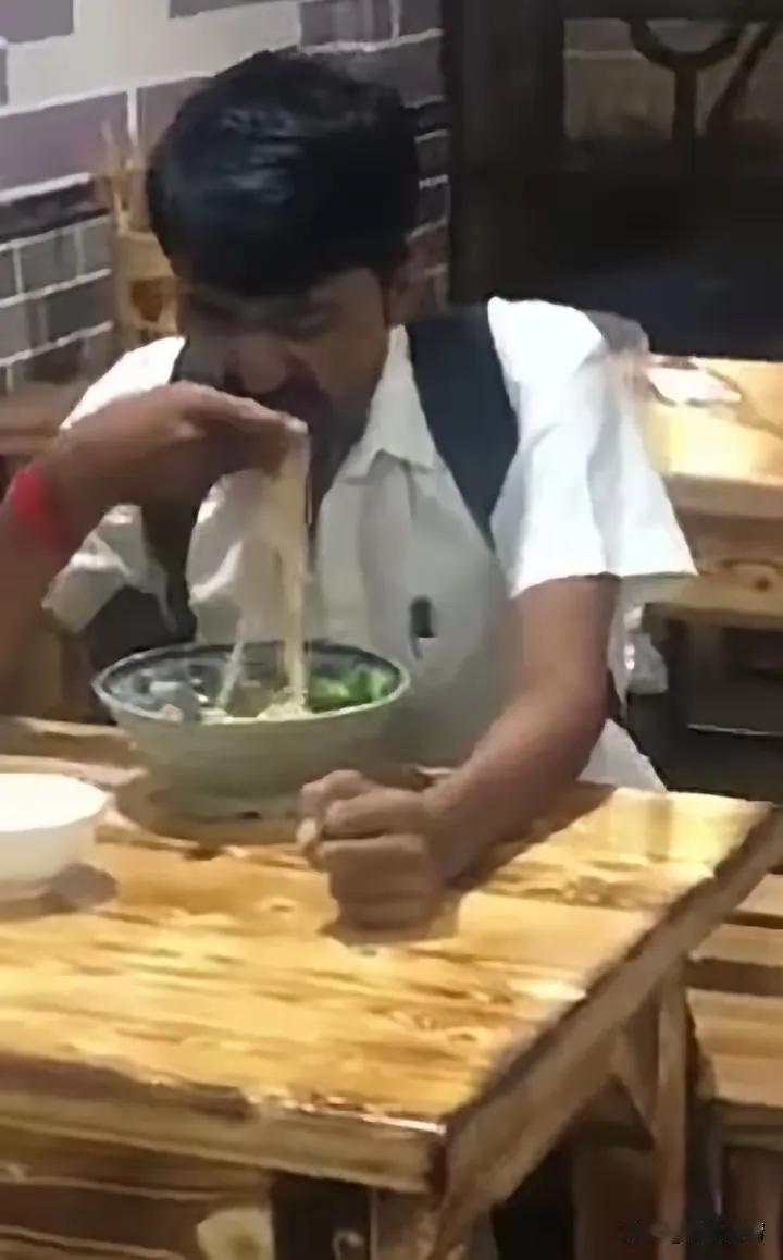 一家米线馆来了位老外, 食客们也没太在意, 他点了米线后就坐了下来, 看着像是印
