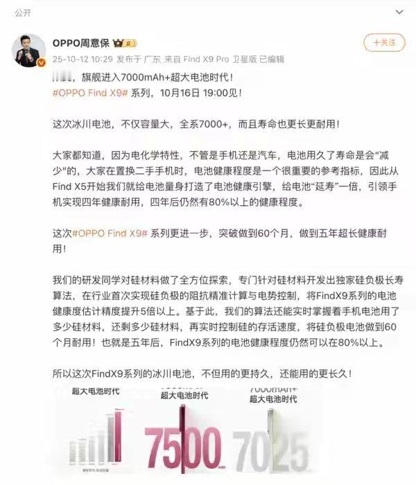 【OPPO周意保:Find X9系列全系搭载7000+容量电池】
