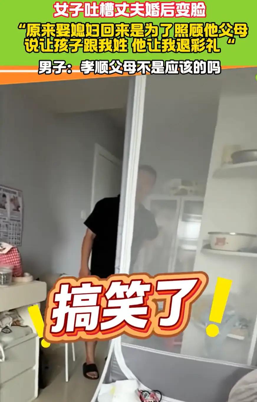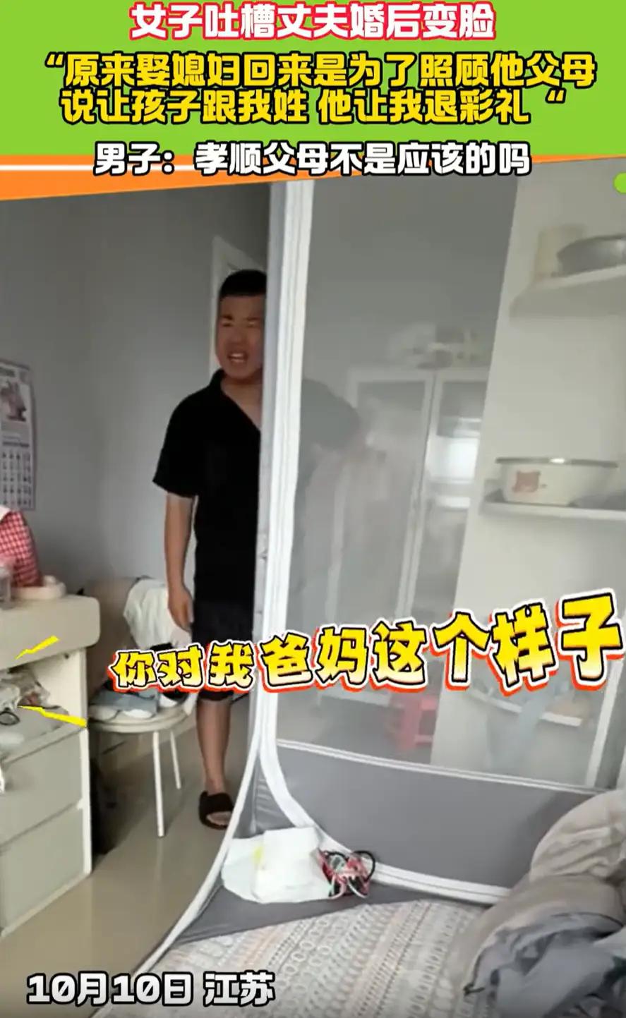 江苏,一女子发视频吐槽,称自己的丈夫婚后变脸,本以为把自己娶过来是为了享福,结果却是来照顾他的父母。丈夫皱着眉头,语气无奈地说父母年纪大了需要照顾。妻子却笑得前俯后仰,边笑边鼓掌,笑声里满是讽刺。 视频中的女子和丈夫结婚两年。她说,婚前丈夫把“以后不让你受委屈”“家里的事我多担着”挂在嘴边,还主动跟她保证,婚后会平衡好她和公婆的关系。可真正住到一起后,一切都变了样。 “每天下班回家,婆婆要么说腰不舒服,要么说累得慌,家务全堆给我。”女子对着镜头无奈地说,一开始她想着互相体谅,主动承担了买菜、做饭、打扫卫生的活儿,可时间一长,丈夫不仅没帮忙,还觉得这是她应该做的。 视频里,丈夫坐在沙发上,眉头拧成一团,语气带着明显的无奈:“我爸妈都快70岁了,身体本来就不好,现在需要人照顾,你多担待点怎么了?” 这话刚说完,女子突然笑了起来,一开始是小声笑,后来越笑越厉害,还一边笑一边鼓掌,那笑声里满是讽刺:“担待?我担待了大半年了!婚前你怎么不说‘娶我回来是让我照顾你爸妈’?现在倒好,享福没享到,倒成了全职护工!” 发这个视频不是想抱怨公婆,而是觉得丈夫婚后的态度太让人寒心。“我不是不愿意照顾老人,但至少得有个商量,而不是把所有责任都推到我身上,还觉得理所当然。” 网友留言说“婚后变脸的男人太常见了,承诺都是听听而已”,也有人觉得“照顾老人是义务,但不该只让妻子一个人扛。