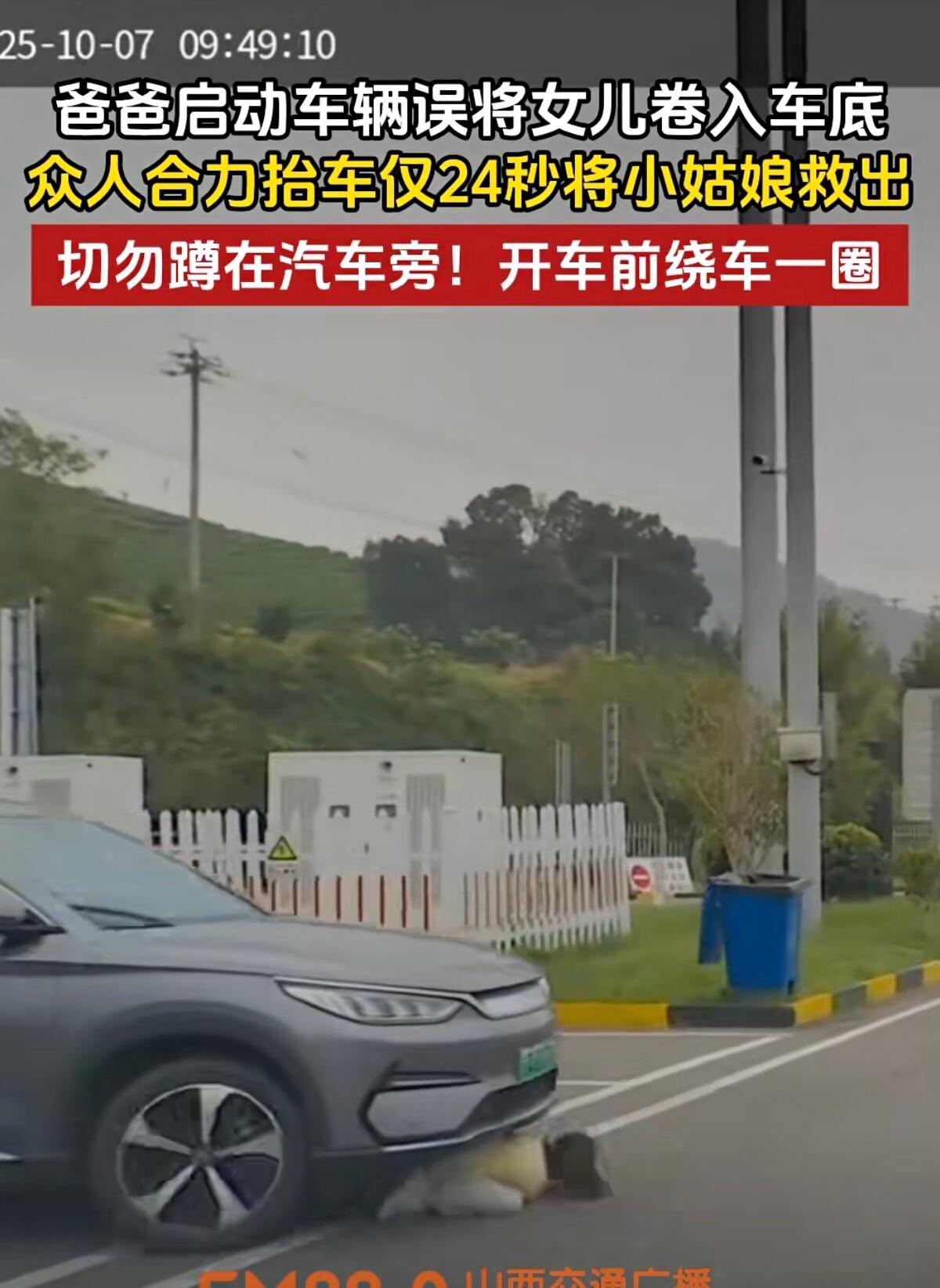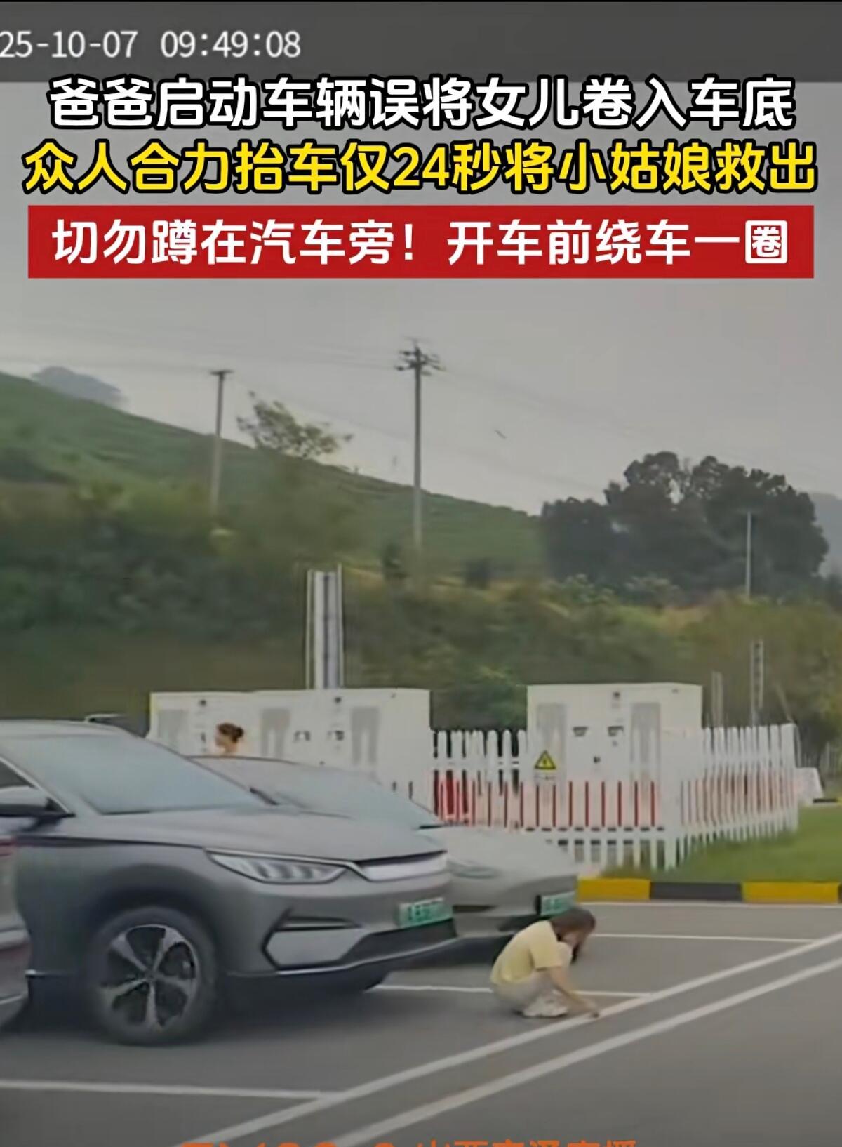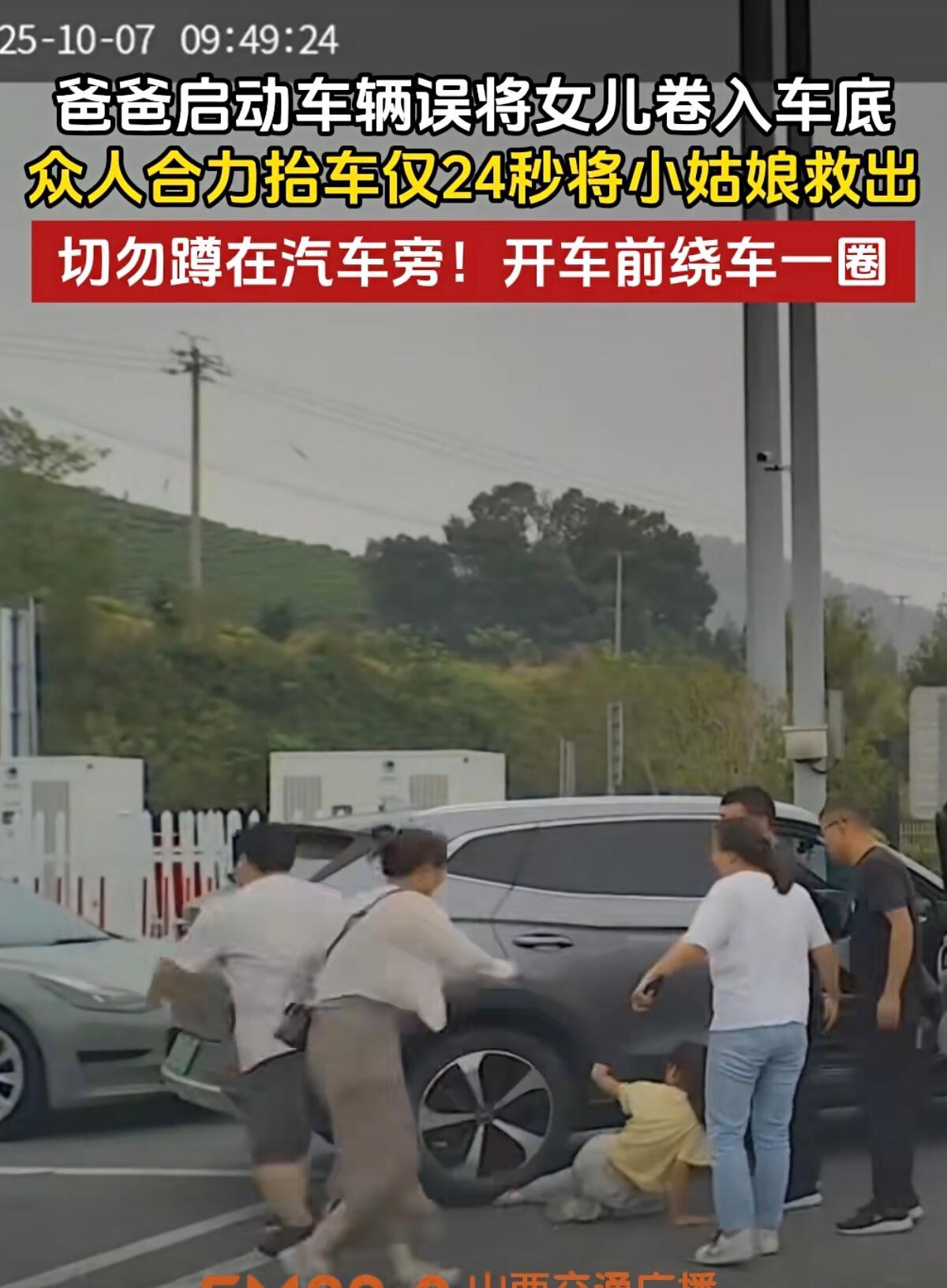 这事儿真是看得人心里一紧。浙江湖州有个爸爸开车出门,压根没注意到女儿正蹲在车头前面玩。结果一发动车子,直接把孩子卷进车底了。 幸好旁边有人看见,拼命按喇叭。可当时太突然,司机没反应过来,车又往前挪了点。这时候路边瞬间冲过来十几个人,二话不说就围住车,喊着“一二三”一起发力,硬是把车给抬起来了。 要我说,这帮路人真是好样的。那么重的车,说抬就抬,硬是给小姑娘撑出了一条生路。孩子被抱出来时还能哭出声,脚受了伤但意识清醒,真是不幸中的万幸。 当爸的这时候才明白发生了什么,赶紧接孩子去医院。检查下来还好没骨折,养养就能好。 说实话,这种事儿最让人后怕。家长一时疏忽,差点酿成大祸。也幸亏是在人多的地方,要是在偏僻处,后果不敢想。 现在很多家庭都有车,真得提醒各位司机:上车前务必绕车看一圈,特别是有小孩的家庭。孩子个子矮,蹲在车前根本看不见,倒车影像也拍不到。别等出了事再后悔。 这次多亏了那群热心人,他们抬起的不仅是一辆车,更是一个家的希望。为这些陌生人点赞,也希望所有司机都能引以为戒。