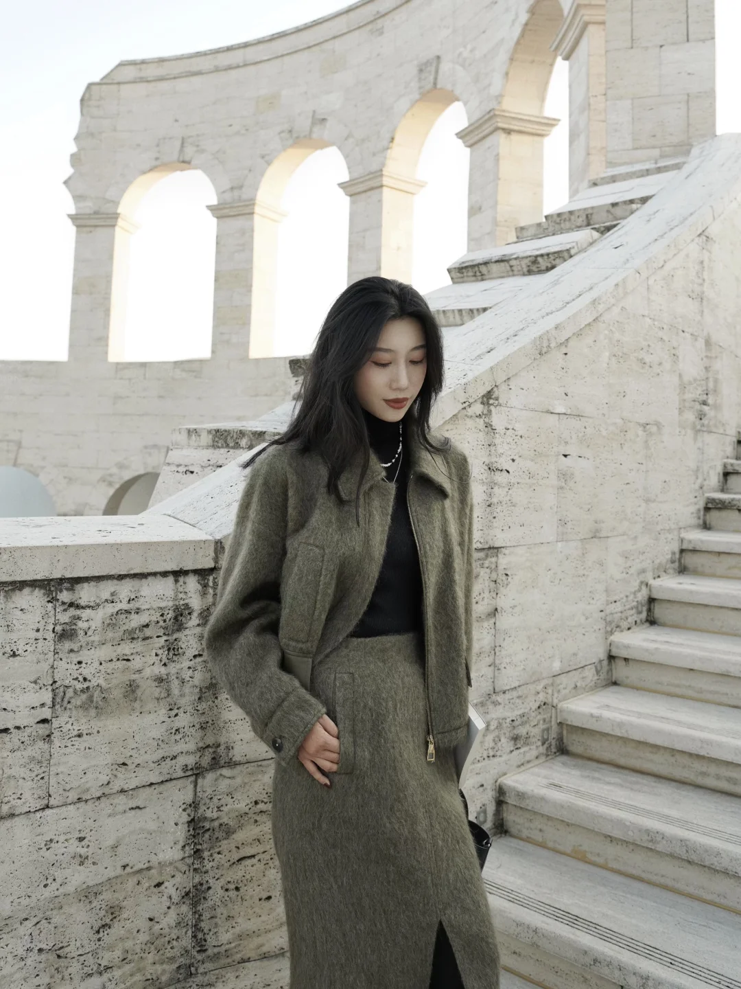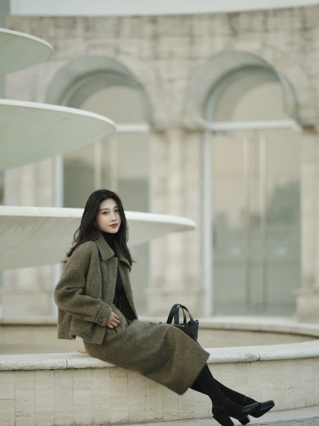 身着轻盈羊毛套装,细腻触感带来全然的舒适与自信,