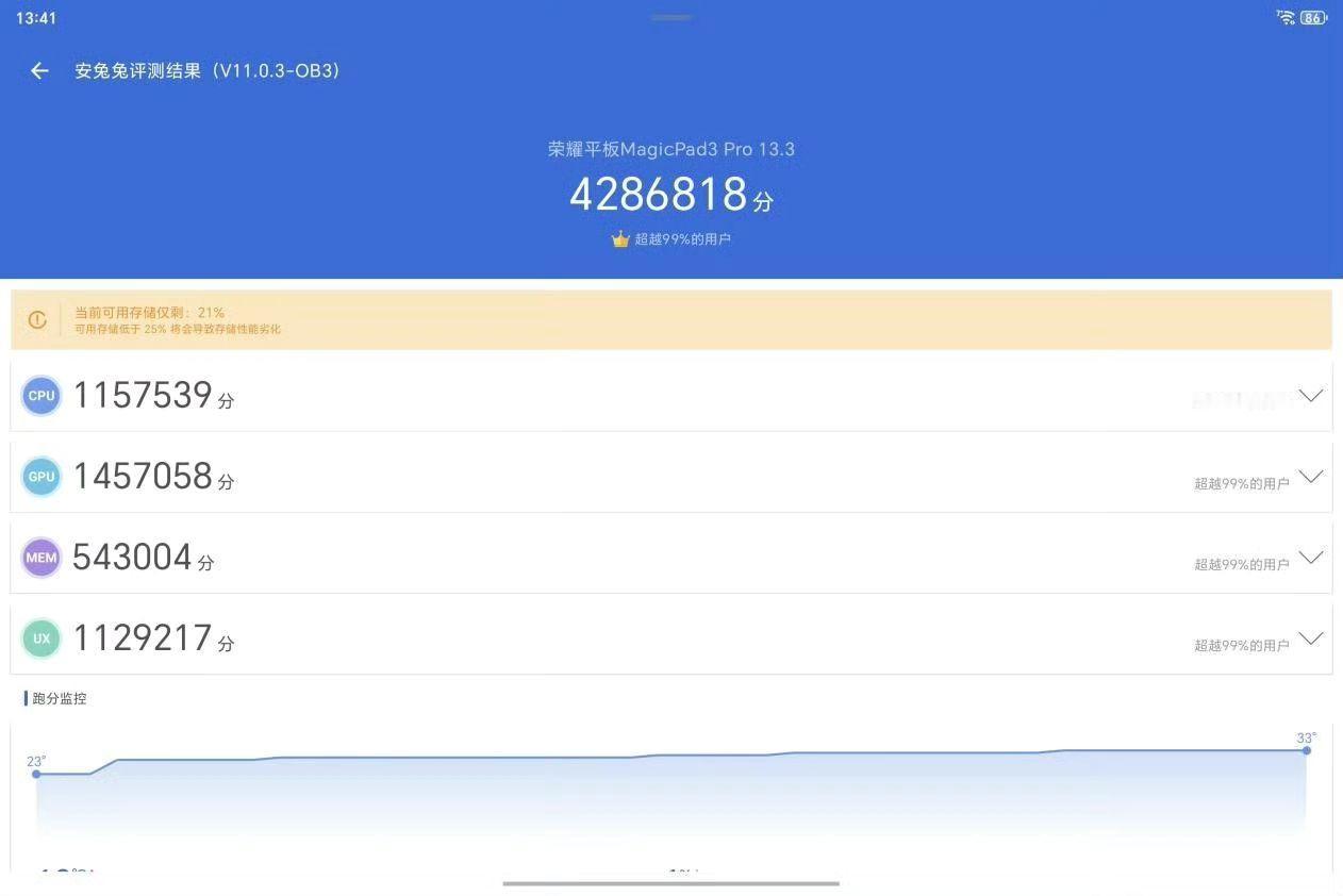 喷子可以闭嘴了!荣耀MagicPad3Pro用实力说话,跑分430万,性能天花