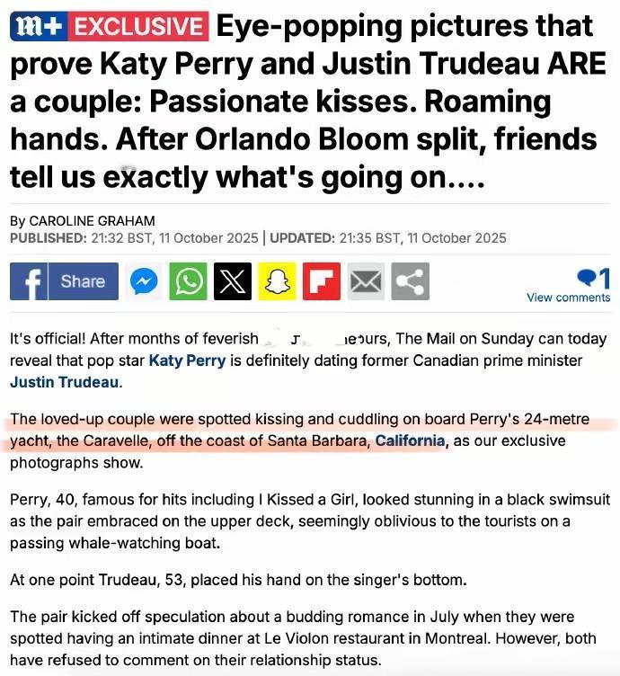 这个世界真是小啊。名人都是亲戚,都可以扯上关系。 媒体报道加拿大前总理奥鲁多跟女歌星水果姐谈恋爱,而水果姐的前未婚夫是奥兰多·布鲁姆。 虽然没有结婚又分开了,水果姐给奥兰德生过一个孩子。 奥兰多演过《指环王》里的精灵王子,还演过《加勒比海盗》。 奥兰多比特鲁多英俊多了,肯定也比特鲁多有钱。