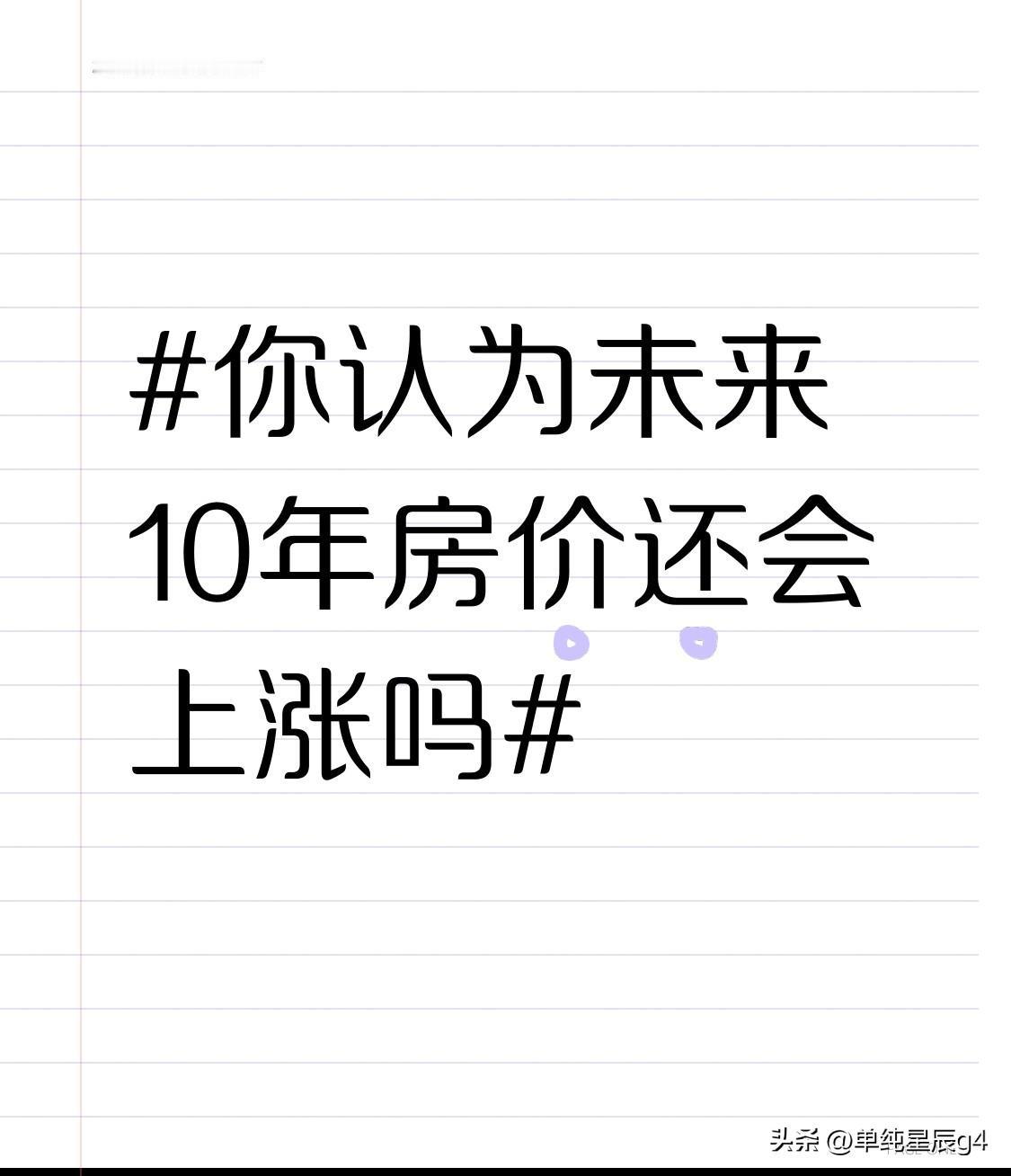 未来10年的房价设想还是会涨的 纯认为还是会涨, 但是不是之前的那种涨, 而是