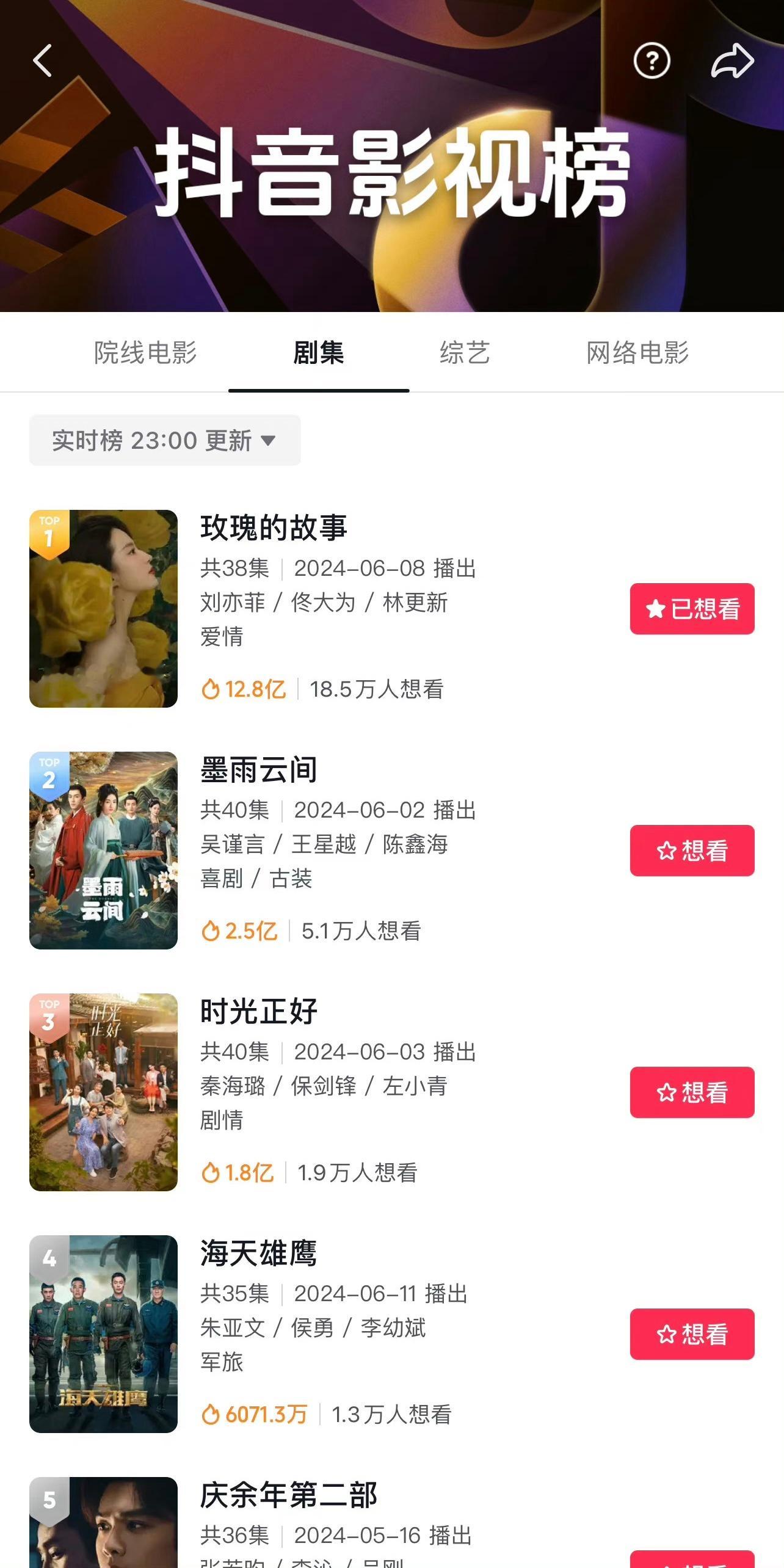 刘亦菲玫瑰的故事抖500亿达成[黄玫瑰]