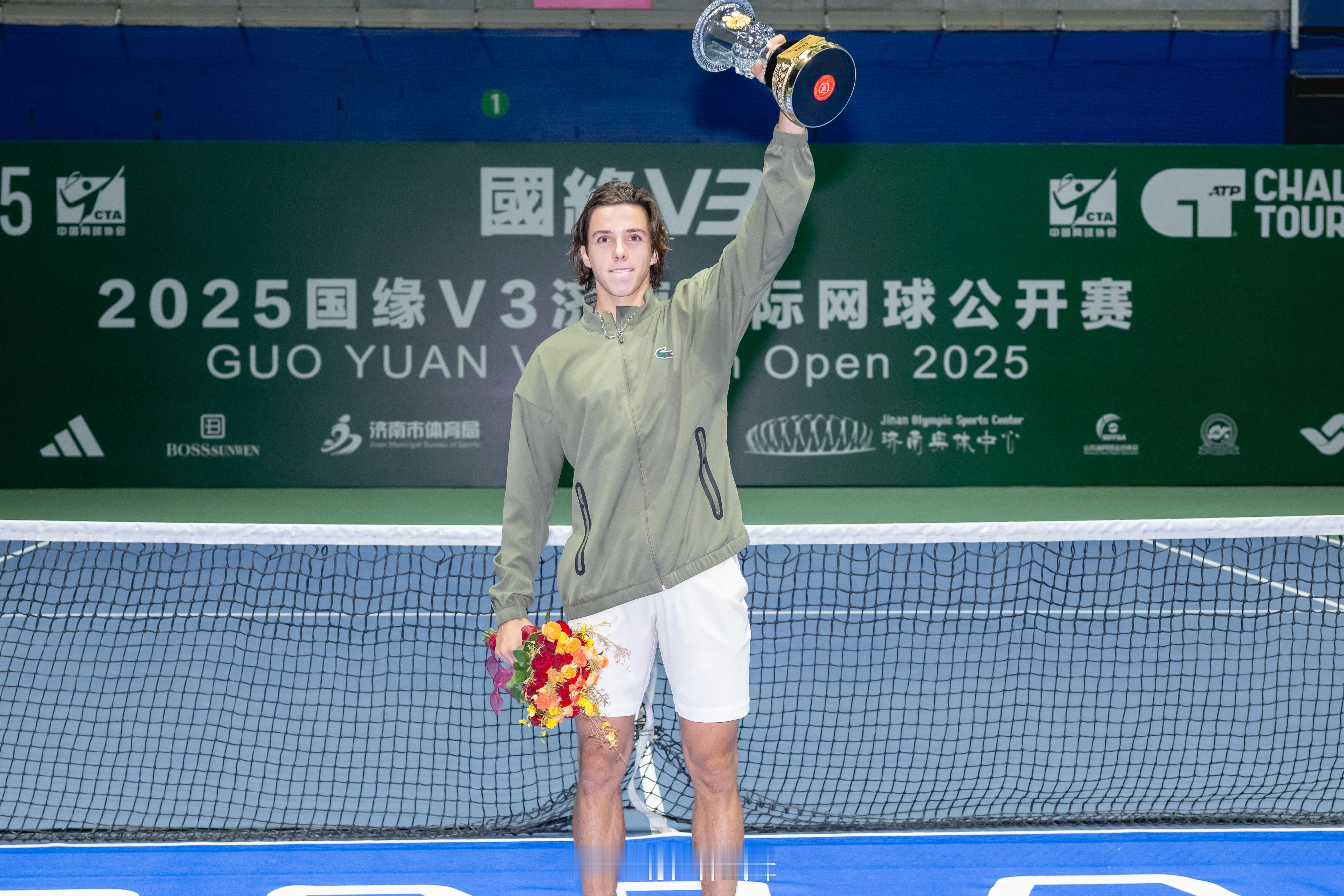 10月12日,2025国缘V3济南国际网球公开赛男单决赛在济南奥体中心网球场圆满收官。这场焦点之战汇聚两大实力选手——头号种子卡佐与美国名将麦克唐纳,最终卡佐凭借稳定发挥,以6-3/6-2击败对手,不仅首次亮相济南便成功夺冠,更一举拿下职业生涯最高级别单打冠军。