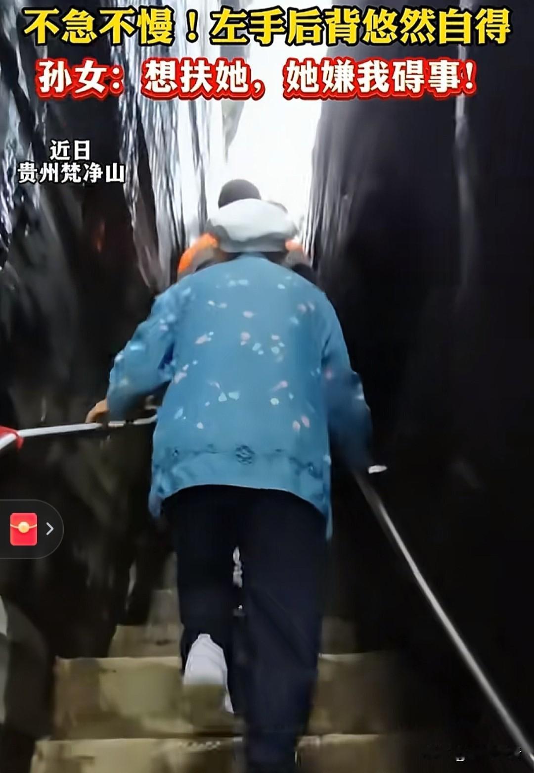 国庆假期最后一天,贵州铜仁梵净山景区出现了令人惊叹的一幕。一位83岁的老奶奶在爬山时健步如飞,将同行的家人远远甩在后面。 视频中的老人腰背微驼却步伐稳健,虽然手持拐杖,但爬山时根本用不上,左手后背,悠然自得地稳步向上攀登。据孙女唐女士介绍,奶奶一鼓作气爬完了老金顶和红云金顶,全程大约2400米,用时三四个小时,几乎没怎么休息。而孙女则在后面气喘吁吁地追赶,还被奶奶嫌磨蹭。 家人原本担心老人体力不支,带了拐杖还准备随时背她下山,结果奶奶的表现完全超出了他们的预料。景区监控显示老人当天步速稳定,每小时能走六百级台阶。当地向导介绍这条线路正常要五到六小时,老人四小时完成已经算超常发挥。 唐女士透露,奶奶平时就热爱运动,心态乐观开朗,一直坚持干农活,巡山时20分钟可爬完普通人45分钟的山路。医生检查过老人的各项指标,其心肺功能和五十岁的人差不多。 我要甘拜下风,给硬核奶奶点赞了👍