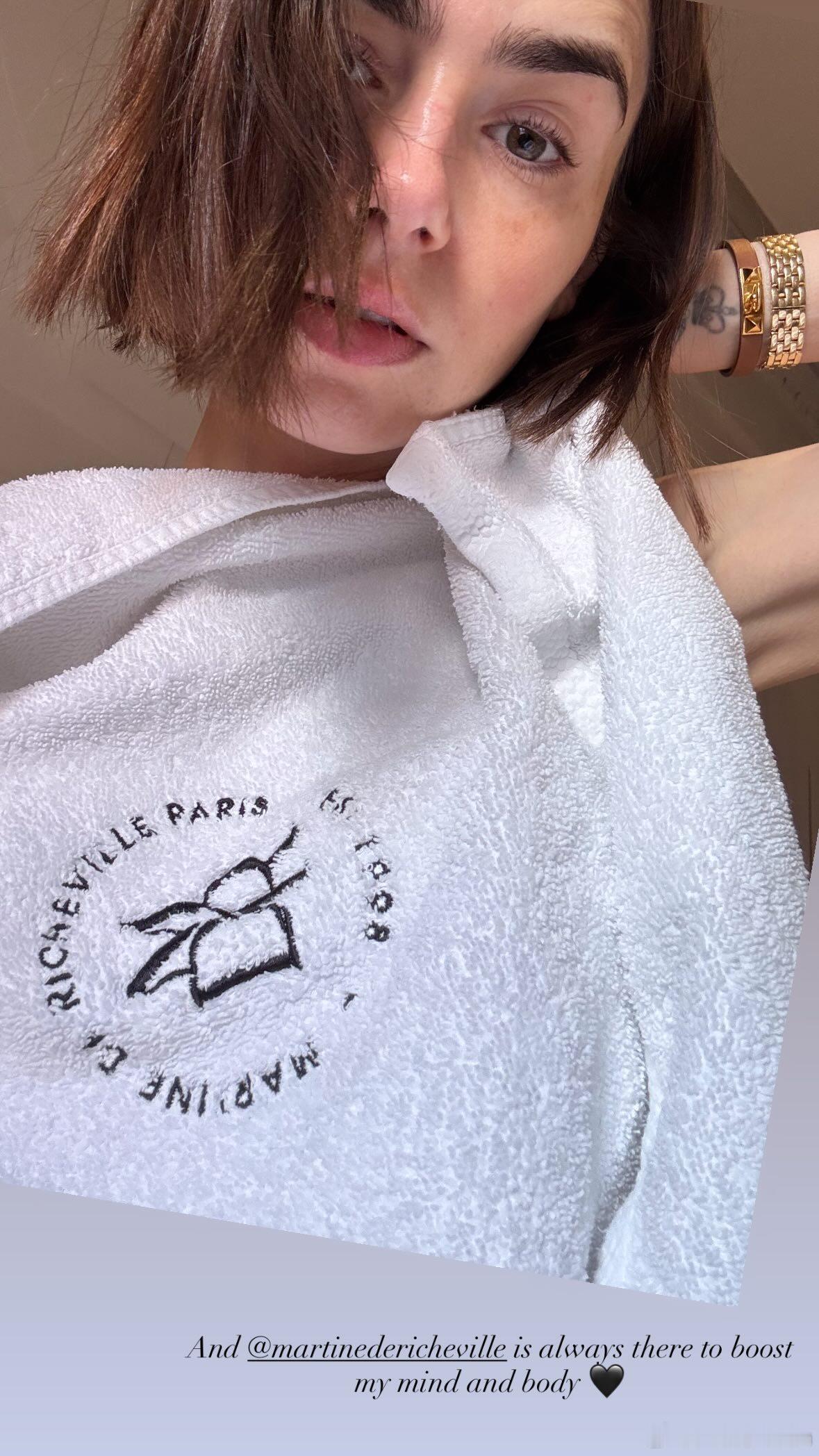 Lilycollins莉莉柯林斯晒新自拍,刚做完美容保养的莉莉顺道为两家星级美