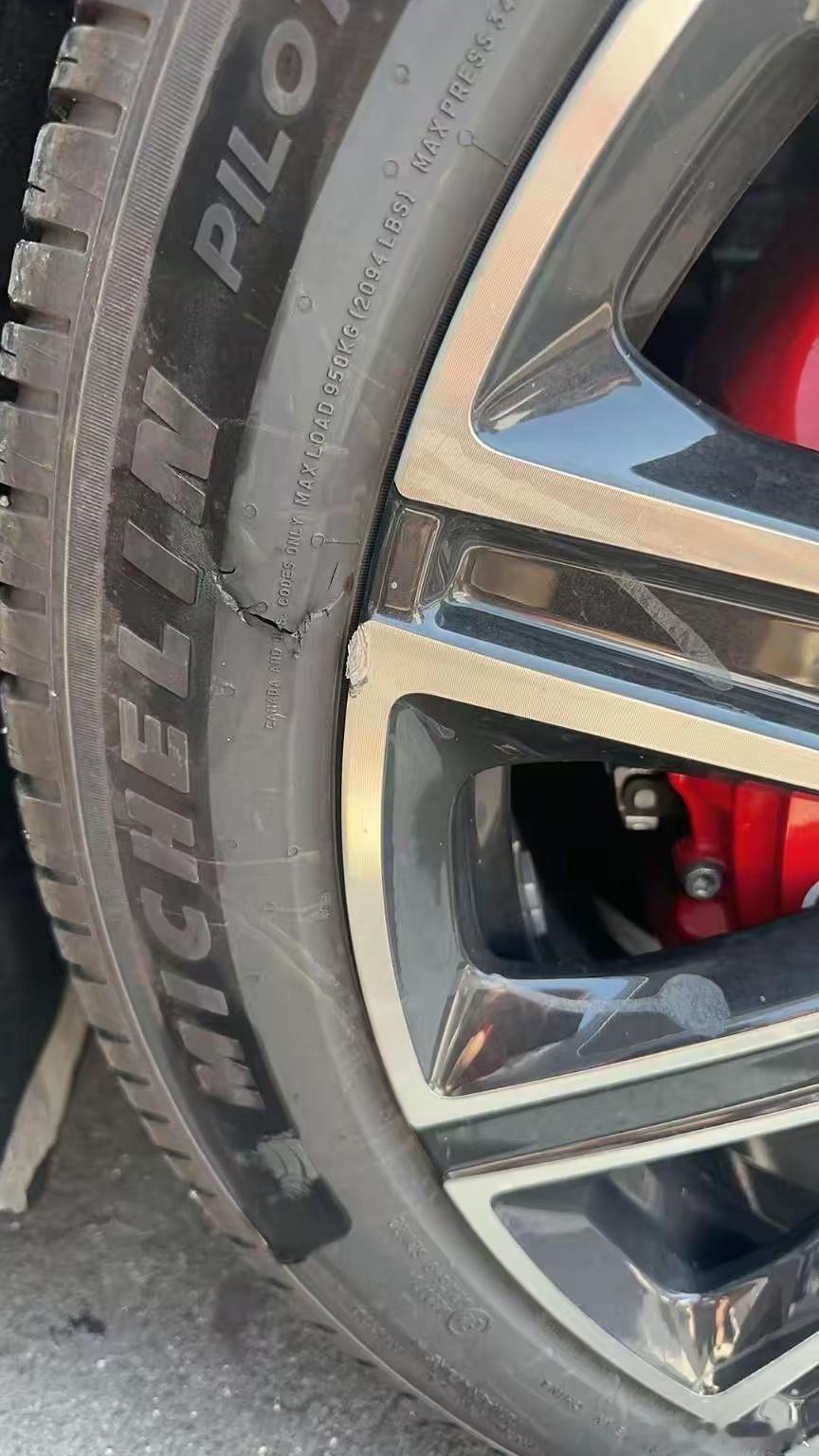 为省几百块赌命大?我的2000多公里新轮石牙子刮的口比这小一半,还这这么深,修理店老板都说没事我也换了,要不上高速会提心吊胆,花几百块买个心安也值了!