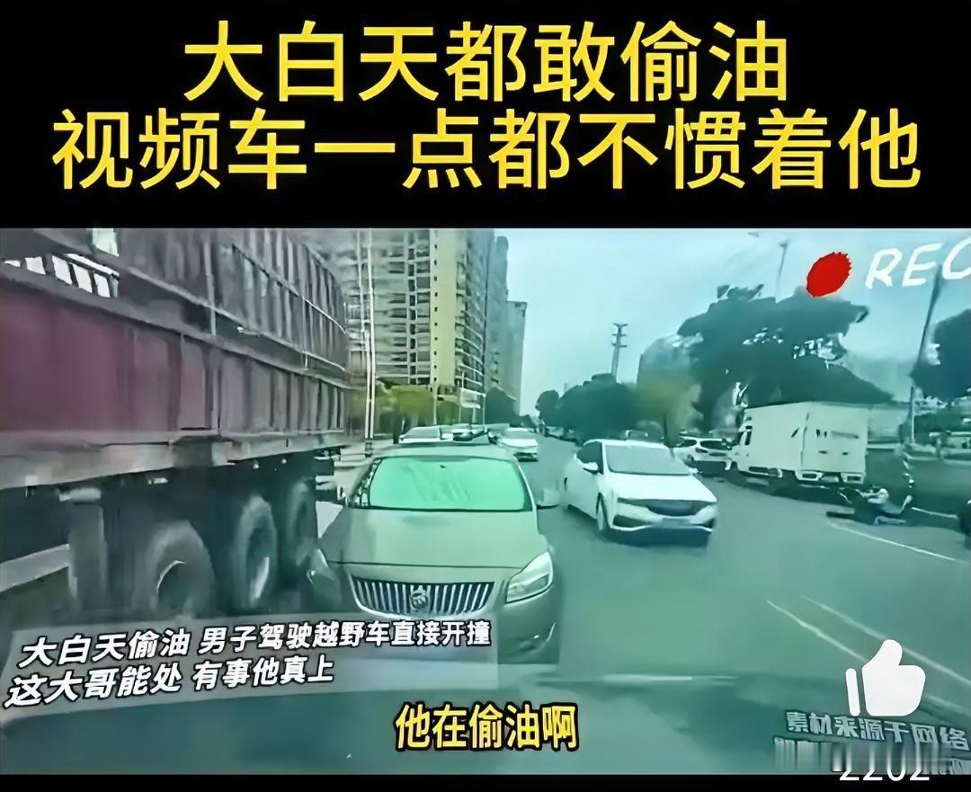 小车大白天在路边偷窃大货车的油,被热心市民发现后一路将偷油车辆撞击逼停至某小区后,偷油贼趁机逃跑。不知道该视频所发生的事件是多久的,至少现在很少听到有偷油一类的新闻了,九十年代倒是听到过很多大货车夜晚停在路边,偷油贼通过改装的车辆将大货车的油偷走,这些偷油贼对货车司机来说的确可恨,为这位勇于对偷油贼斗勇的热心市民点赞。