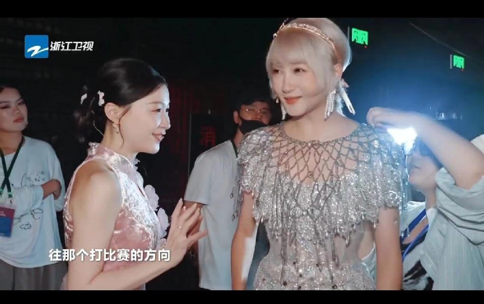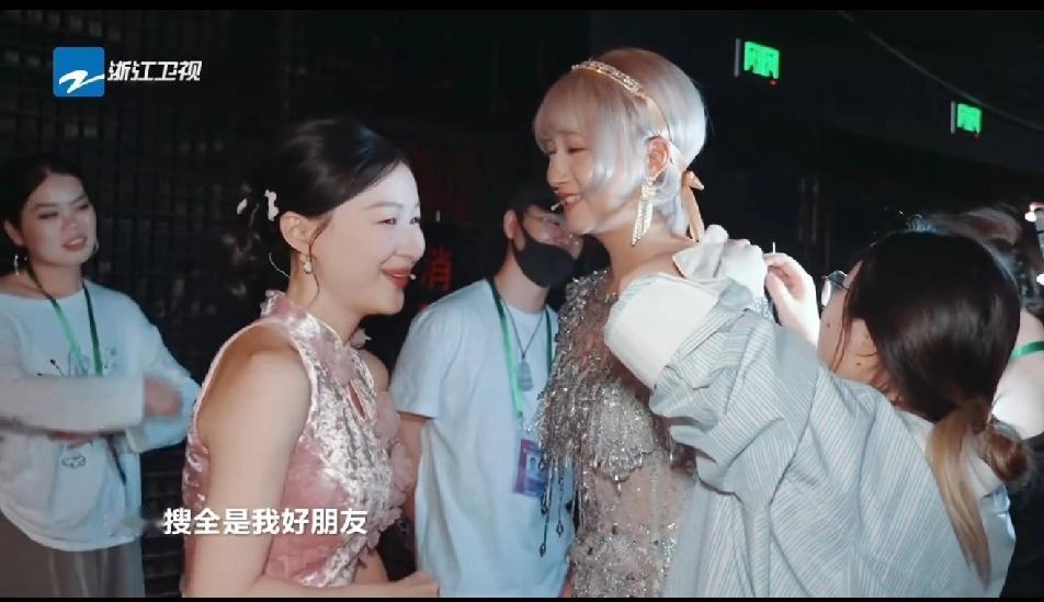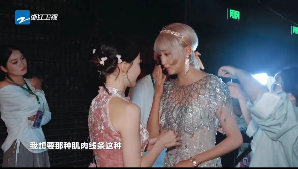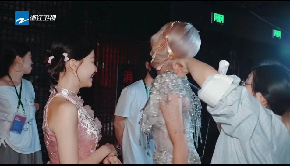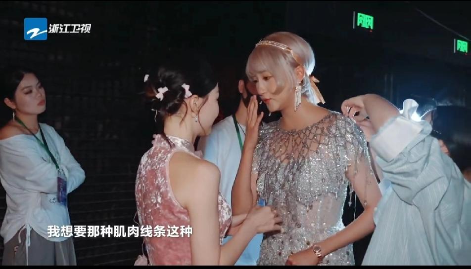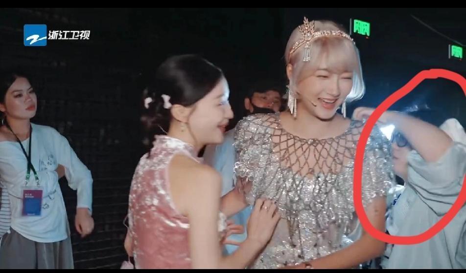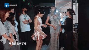 给关晓彤整理衣服的小姐姐好无奈,关晓彤个子那么高,再加上一直动来动去,给整理衣服的小姐姐增加了很大的难度,关晓彤和金靖聊的太尽兴,完全没有顾及身后正在工作的小姐姐,小姐姐拿着针线吃力的修补关晓彤的珠链披肩,她的个子才到关晓彤的肩膀,所以缝制关晓彤肩膀处的衣服时看起来特别吃力!关晓彤只顾聊天,身子一直动来动去,小姐姐就一直跟着关晓彤动来动去,手里还要顾着针线,估计她的内心也是很崩溃的吧!