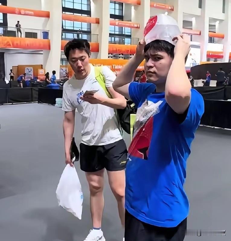 印度办亚锦赛有多不专业? 连空调都不舍的开! 你看把我们运动员热的! 王楚钦,王曼昱,林诗栋都是头顶凉水袋! 最不怕热的陈幸同也扎起了刘海! 昨天日本队比赛, 桥本帆乃香扇扇子, 长崎美柚递冰水袋! 就这样的条件, 办什么亚锦赛? 关键是人家还审核过了!