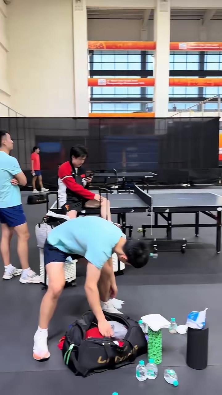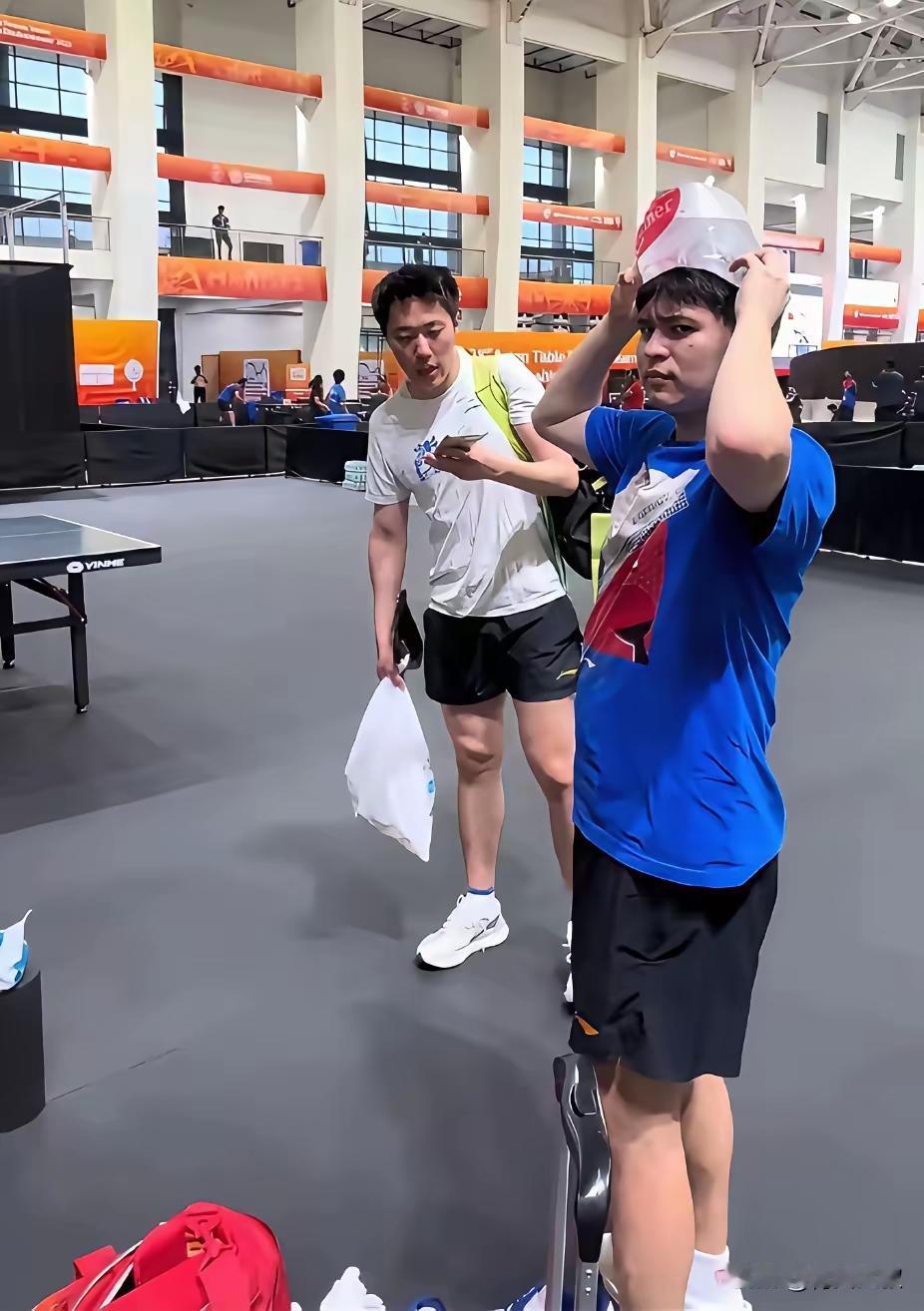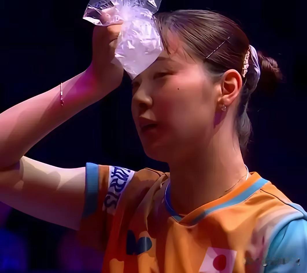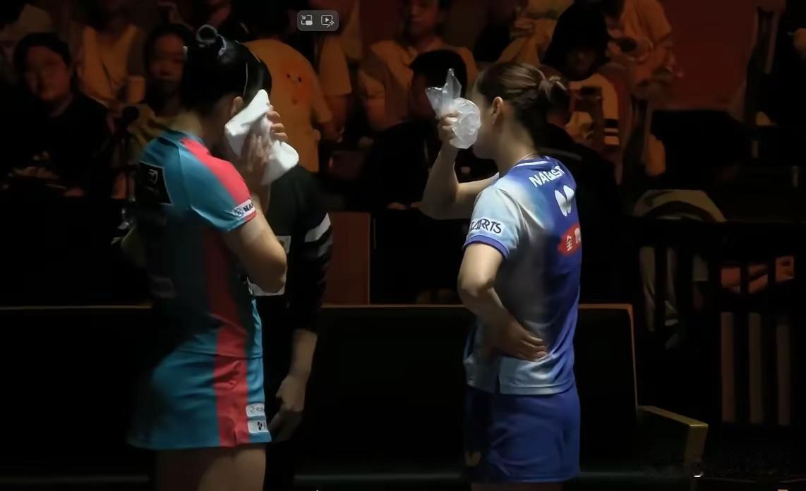 运动员敷冰袋进行物理降温,新奇! 球馆内没有空调,继头哥物理降温后,小石头也在用