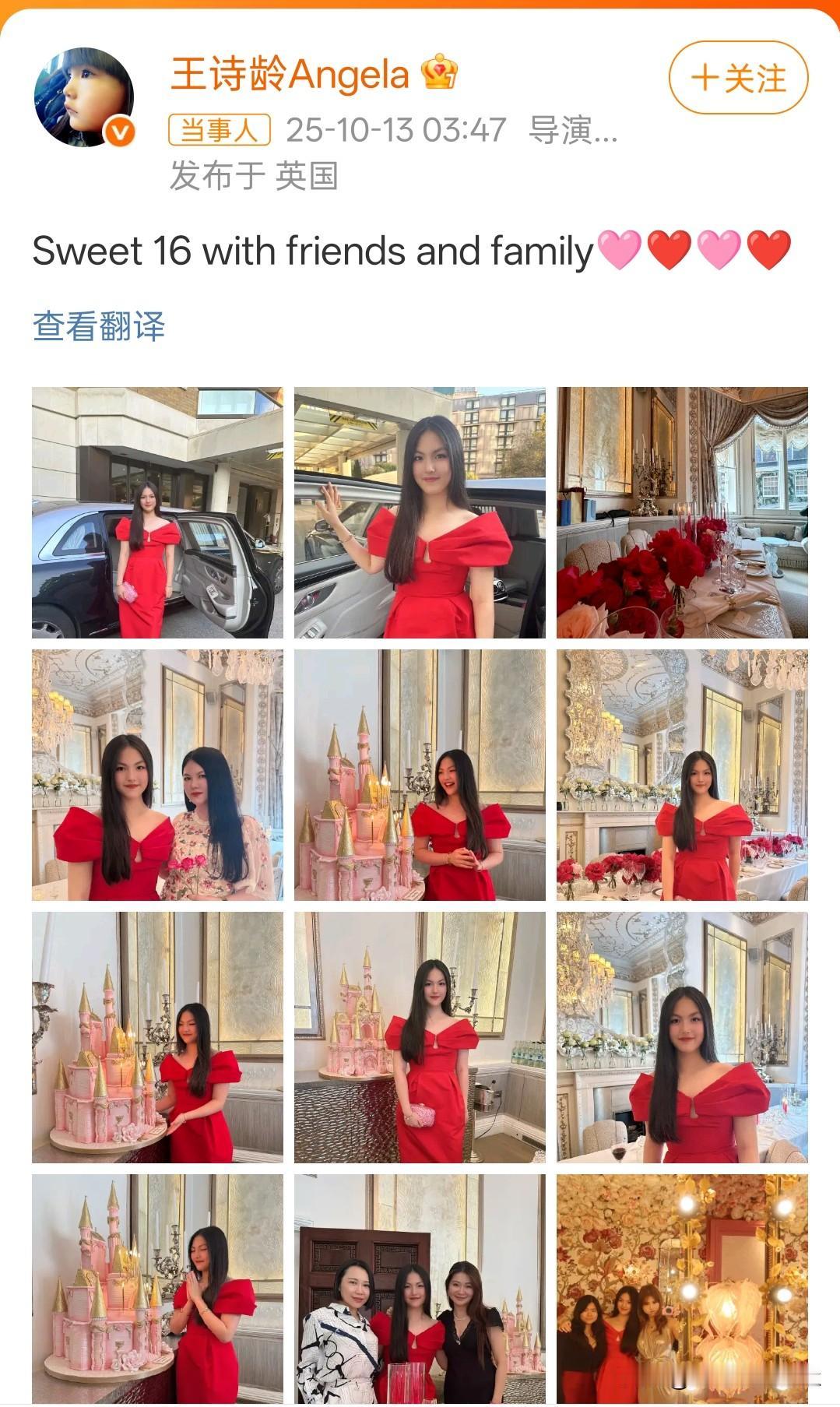 王诗龄16岁生日,李湘王岳伦发文各有意思哦! 王岳伦的发文,当然主角是宝贝女儿