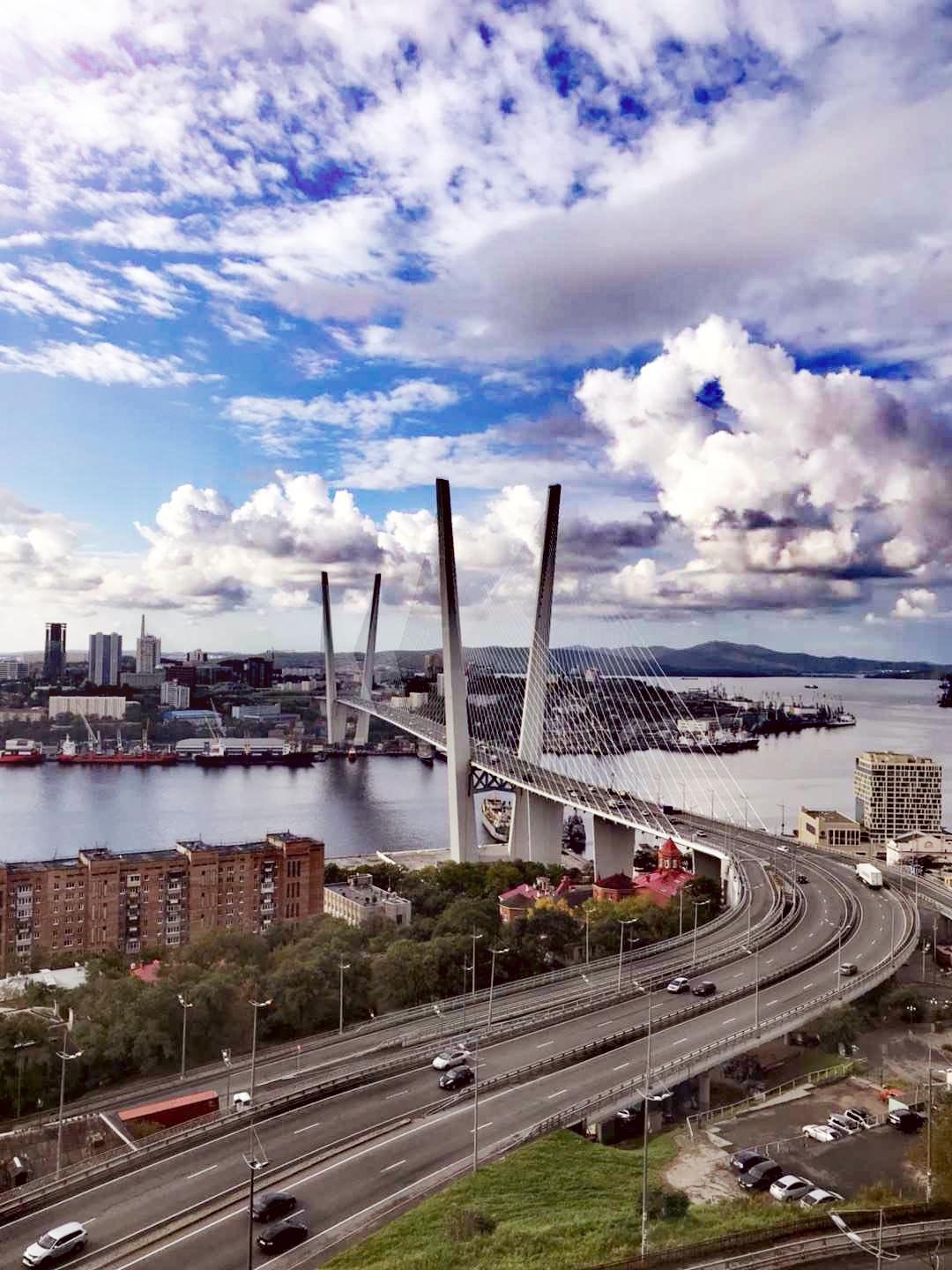 可以分享一张你相册里的天空嘛?俄罗斯岛跨海大桥,是一座位于俄罗斯远东城市海参崴的标志性建筑。蓝天如洗,白云似絮,与桥身相互辉映,形成一道优雅的弧线。