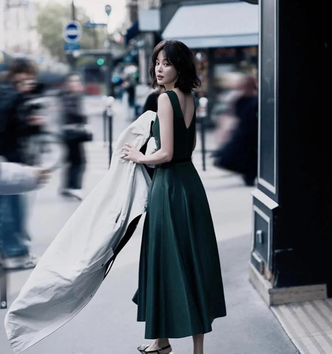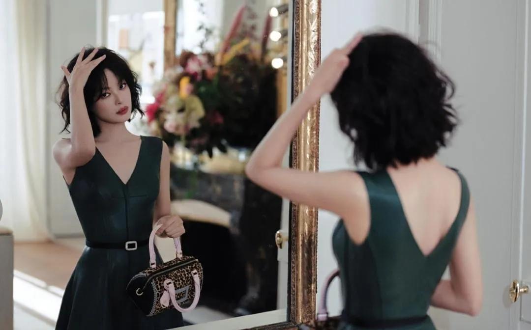 辛芷蕾解锁酷飒新风格,利落V领勾勒颈间线条,修身皮裙紧裹身形,将性感与凌厉完美融合,举手投足间满是冲破常规的时髦张力 。