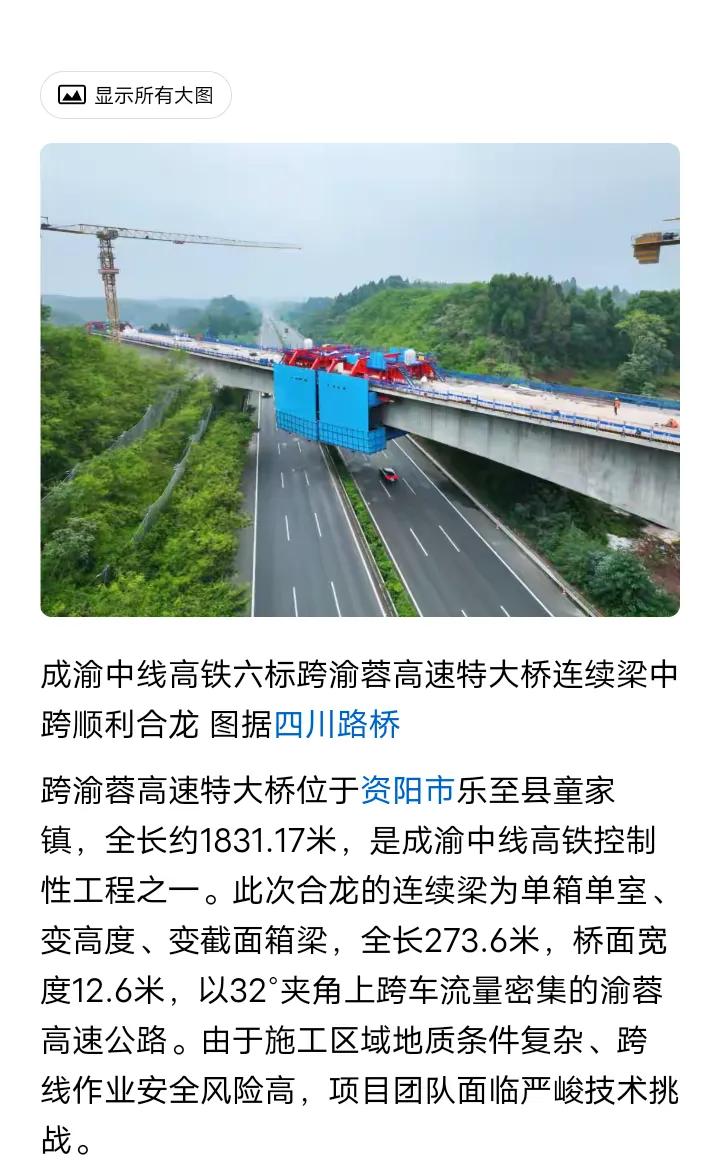 最快高铁,成都途经资阳安岳至重庆时速350公里的成渝中线高铁控制性工程全线约1.