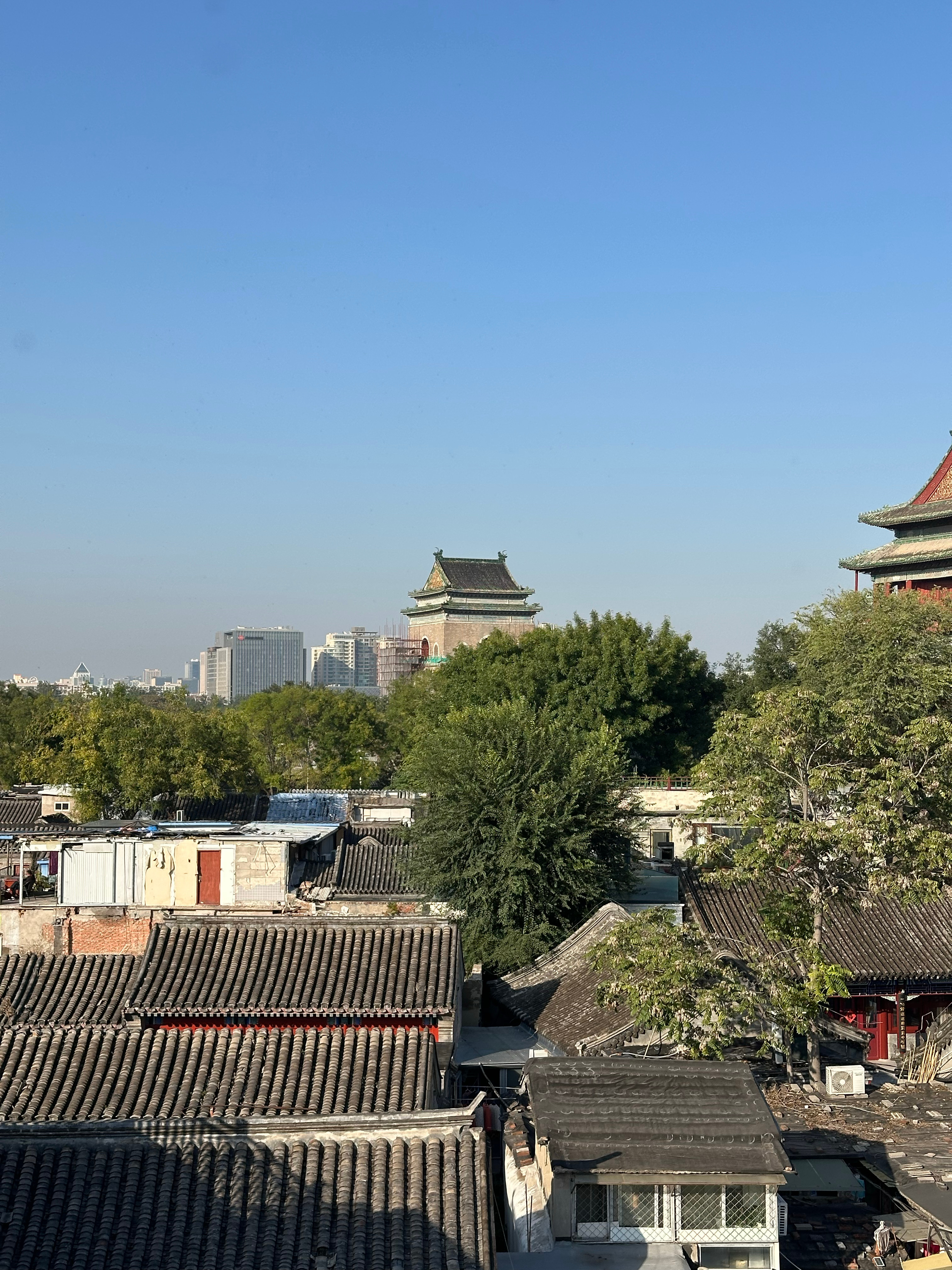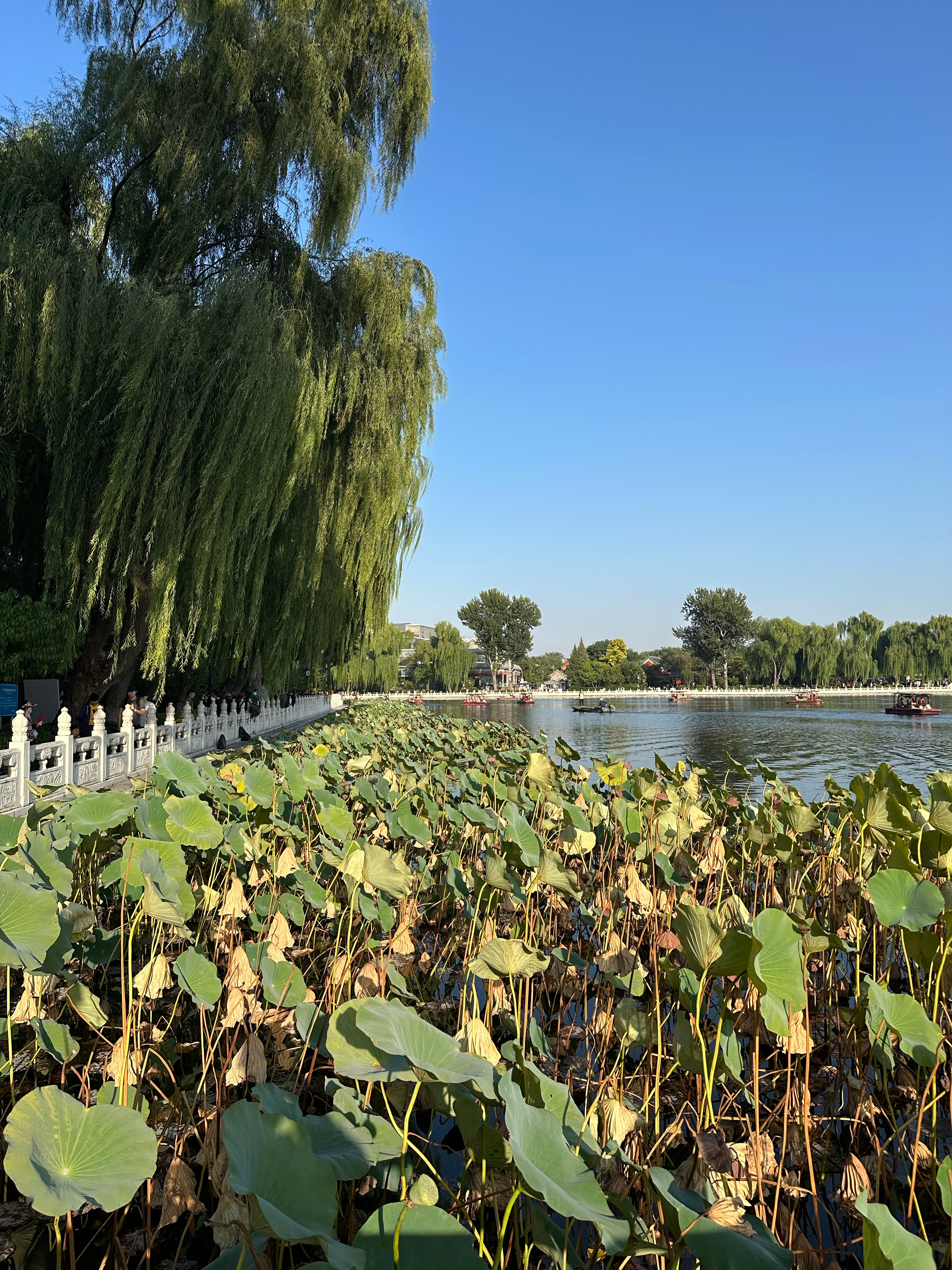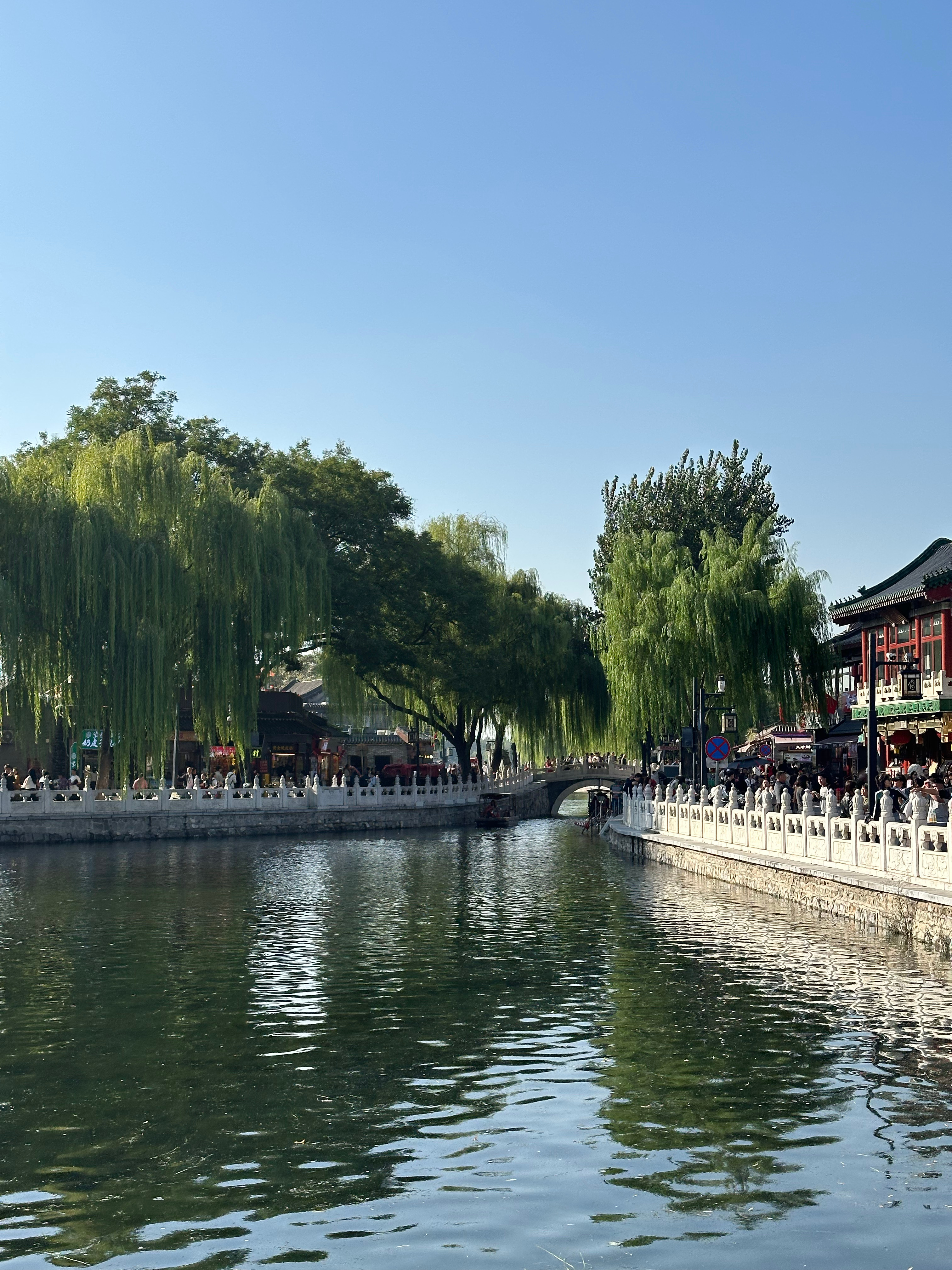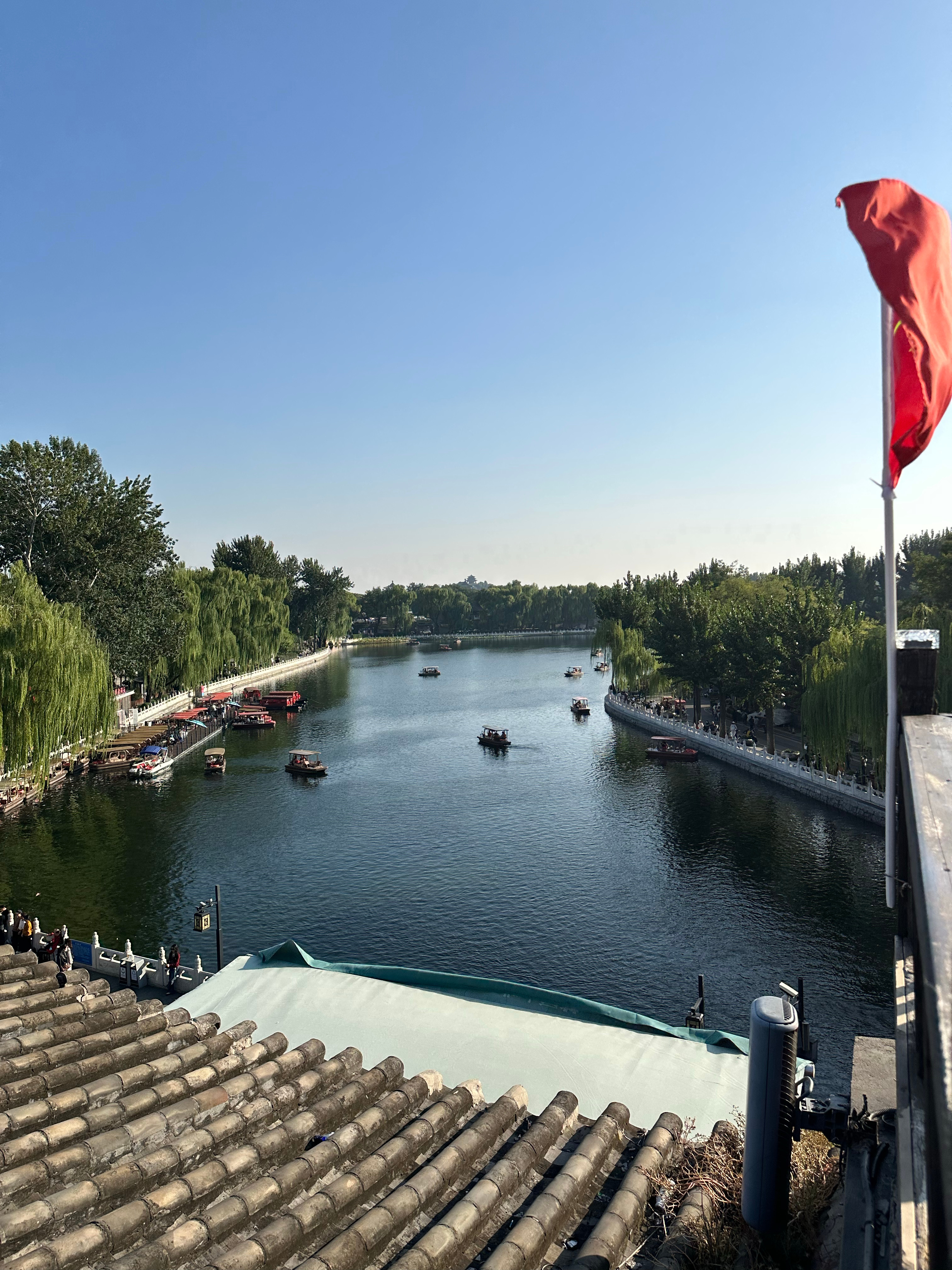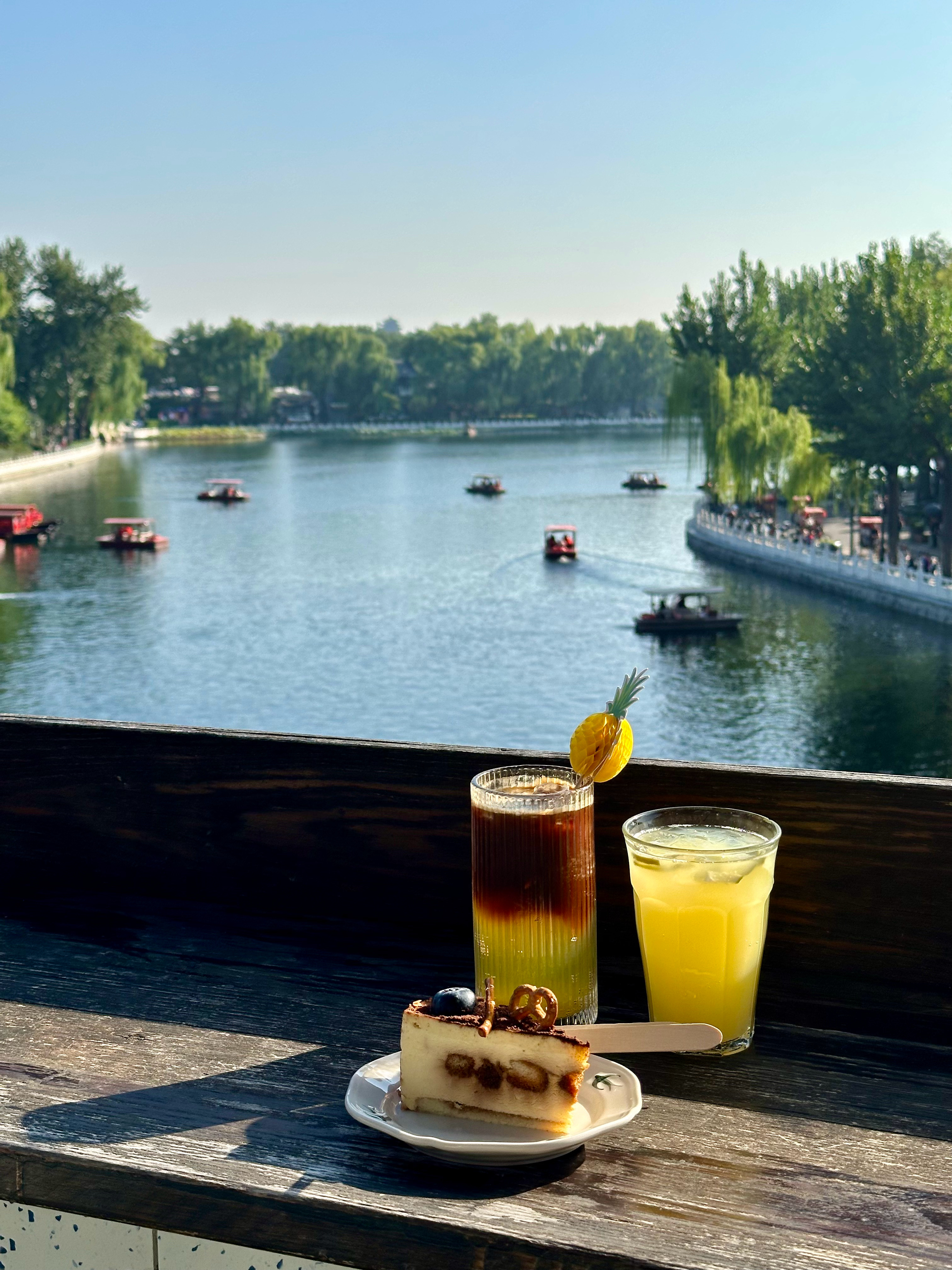 找了个有露台的咖啡馆坐坐,结果帮4个陌生人拍了和什刹海的合照,真没招了[笑cry]