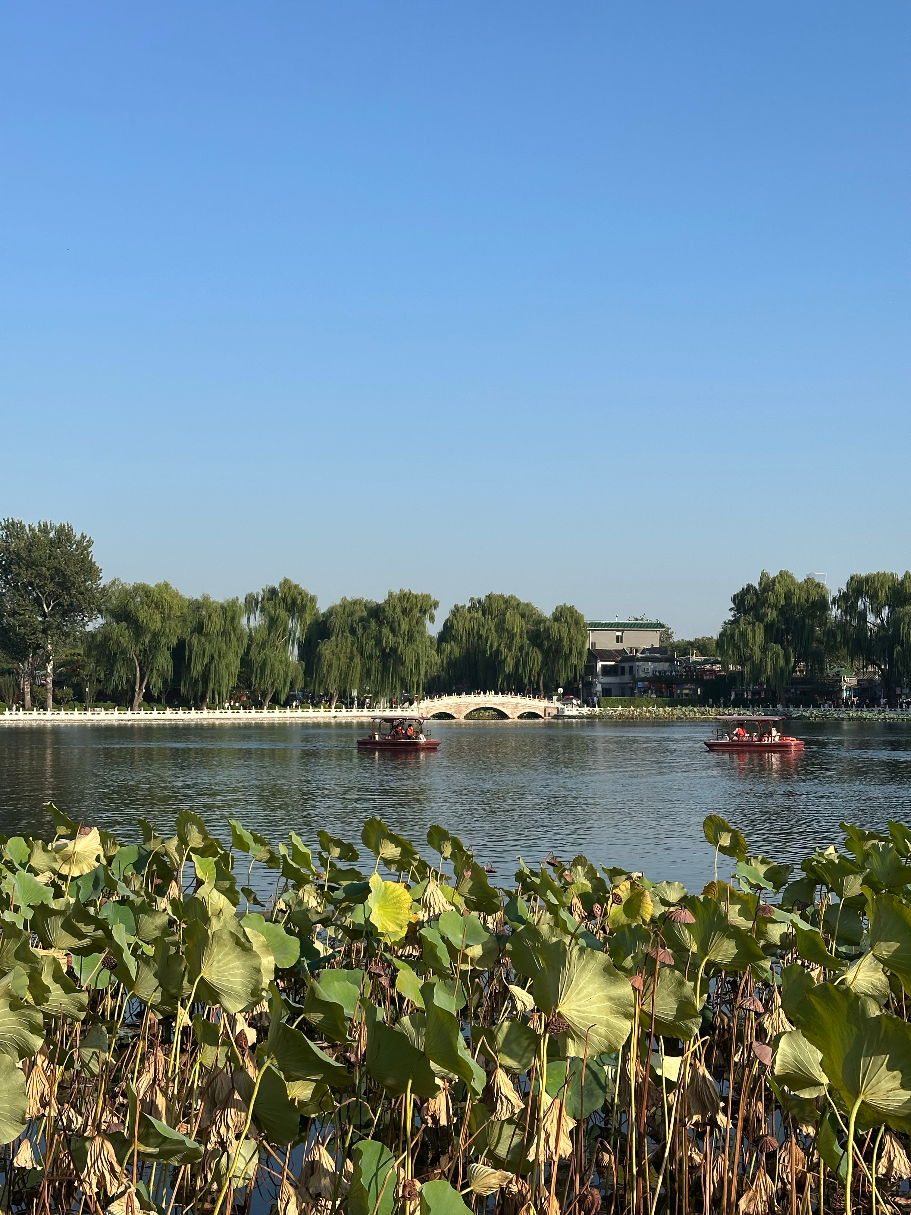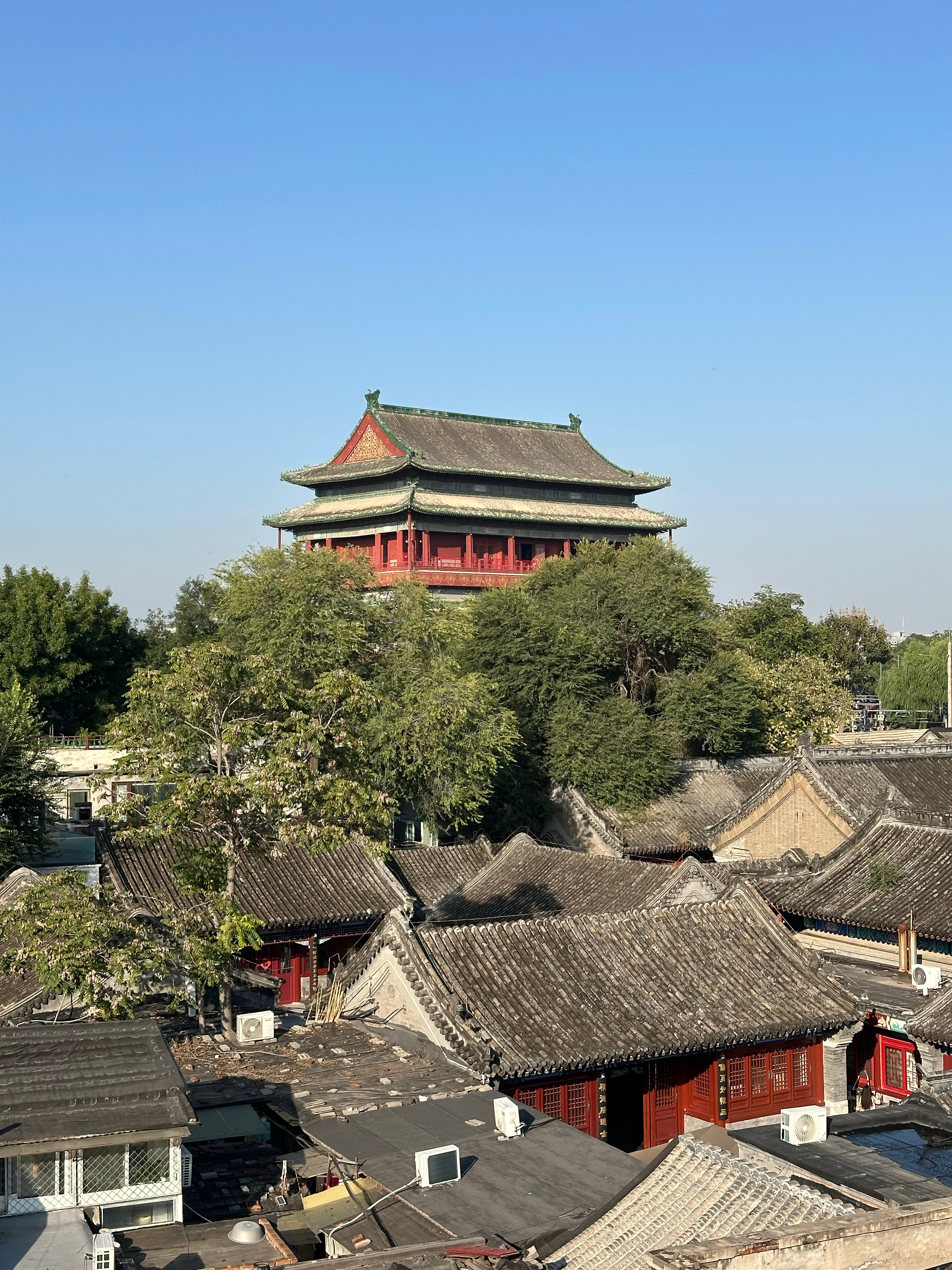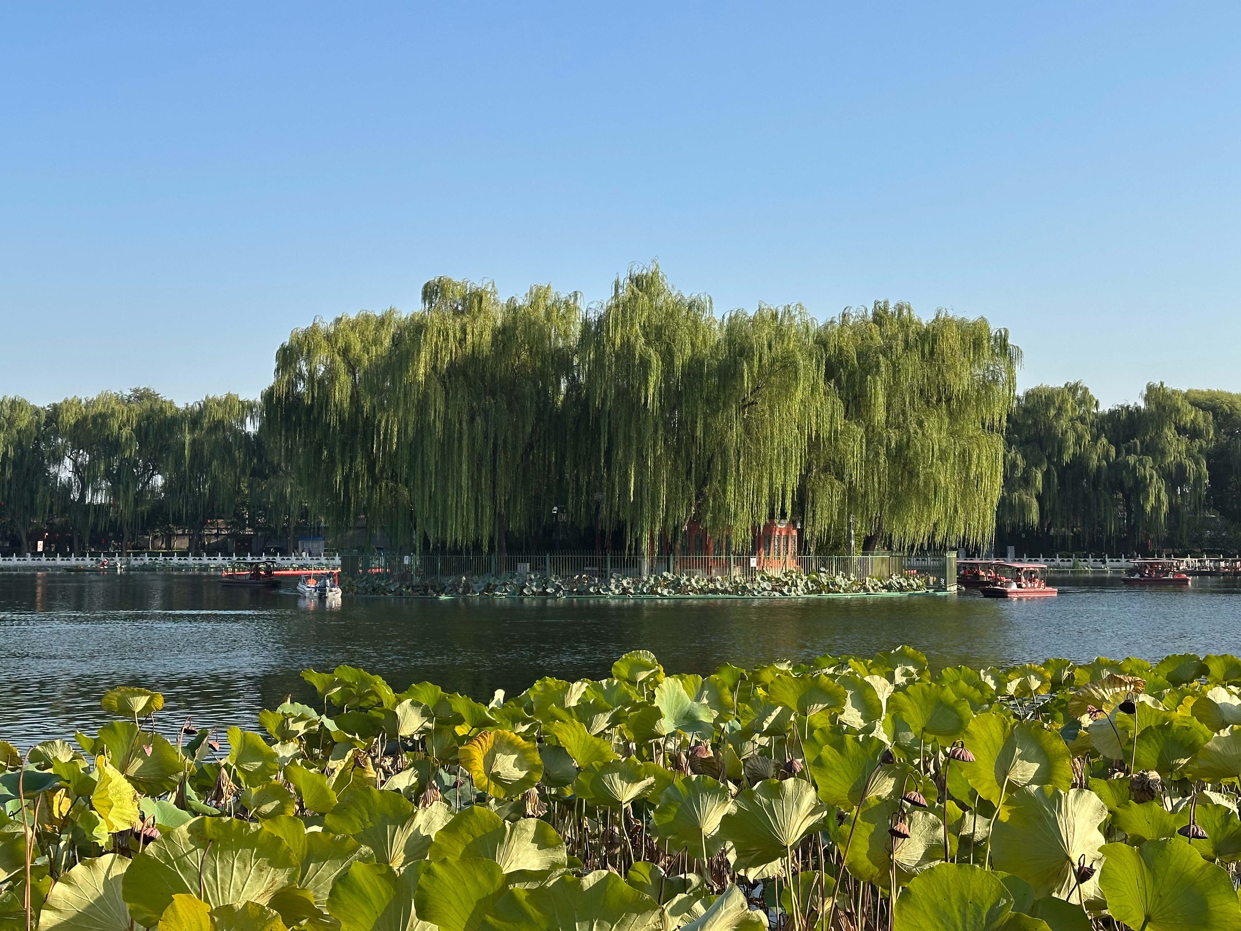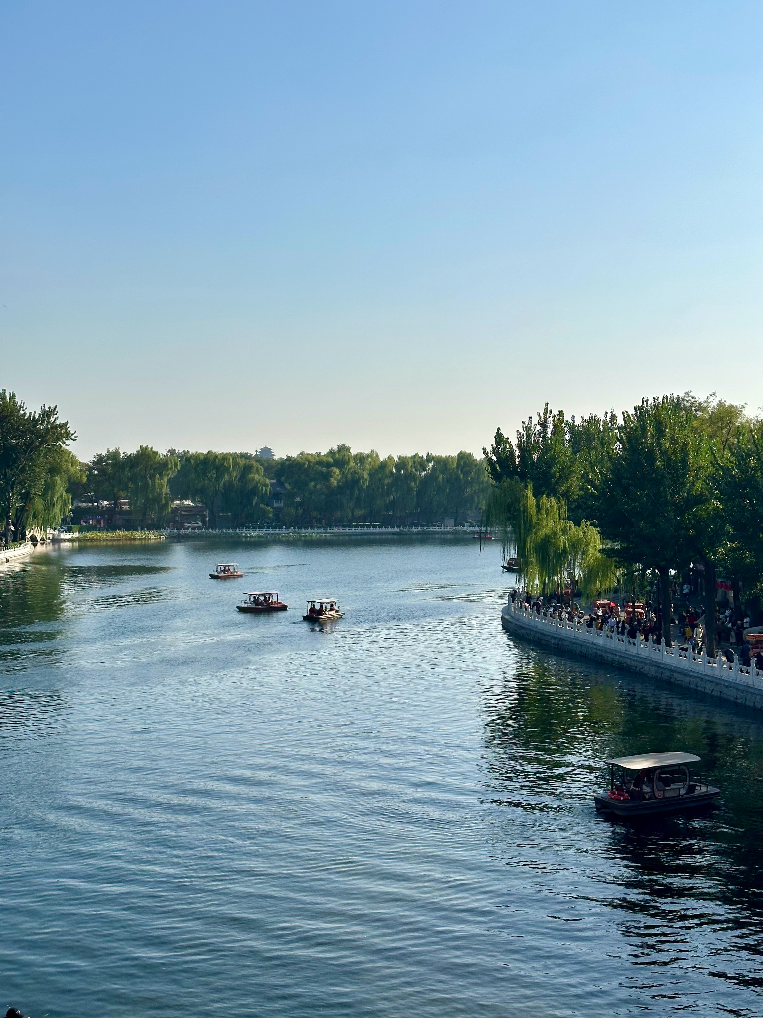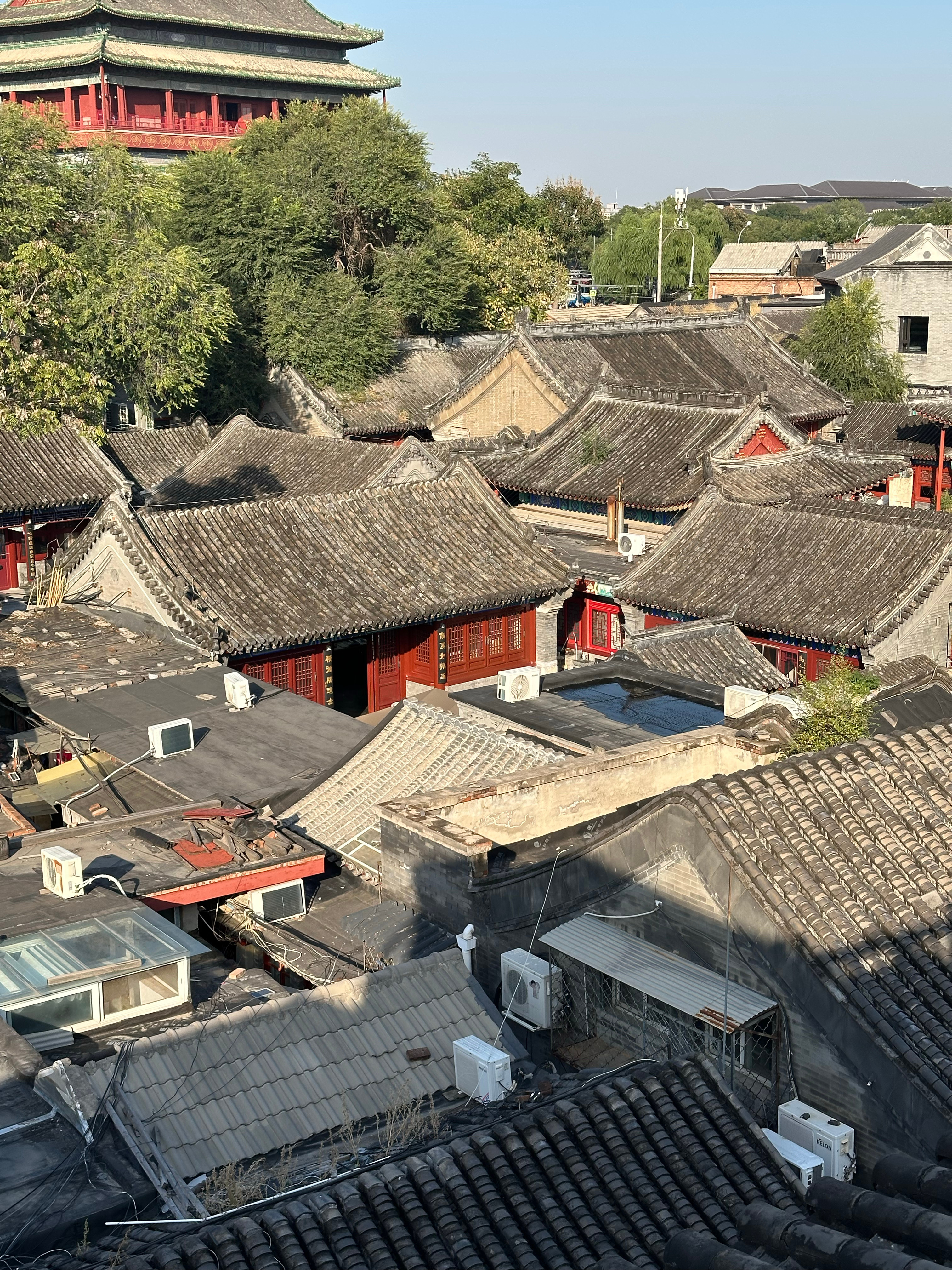 找了个有露台的咖啡馆坐坐,结果帮4个陌生人拍了和什刹海的合照,真没招了[笑cry]