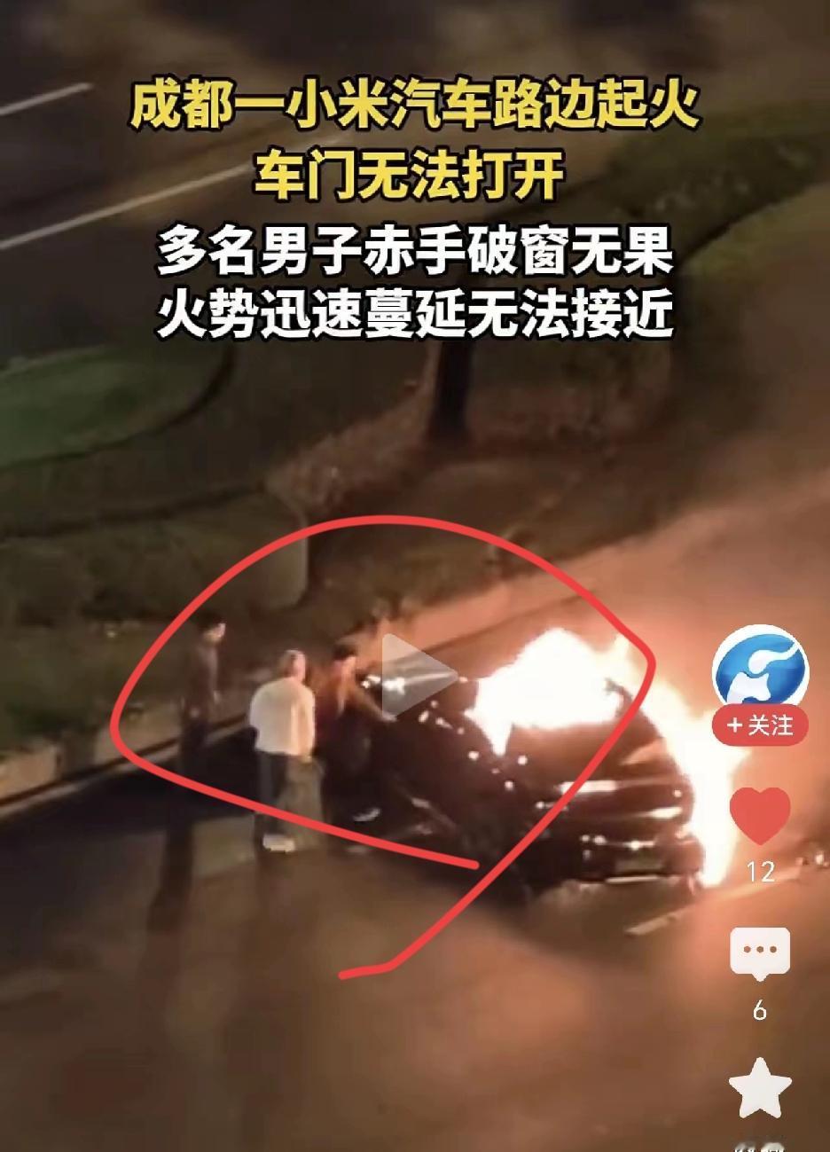 前天坠海, 成都这又起火! 网传人没了,不知道后面有没有官方通告。但视频里路人拼尽全力也打不开车门的画面,看得人手心冒汗。 明明A柱和车门看着没变形,咋就打不开?答案恐怕藏在那时髦的半隐藏式门把手里。这玩意儿靠电驱动弹出,碰撞后一断电就容易卡死,成了“锁命把手”。之前就有事故先例,救援人员只能靠撬门破窗,耽误了黄金时间。 车企总吹它风阻小、有科技感,却把最基本的安全抛在脑后。花里胡哨的设计再多,不如一个能随时拉开的机械把手管用。安全从不是选择题,而是底线。你觉得车企该为了颜值牺牲安全吗?