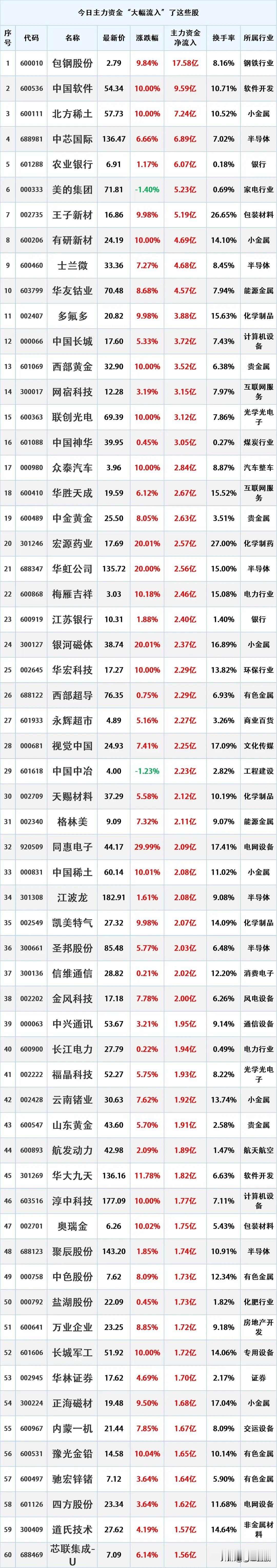 跑步入场,10月13日主力资金大幅流入的股票名单。 资金流入是指在一定时期内(