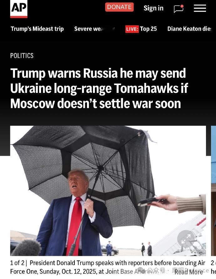 最新消息,特朗普再次发出威胁:如果俄罗斯不停止战争,美国将向乌克兰提供“战斧”巡航导弹,并称“战斧”是“一种令人难以置信的、非常强大的武器。”