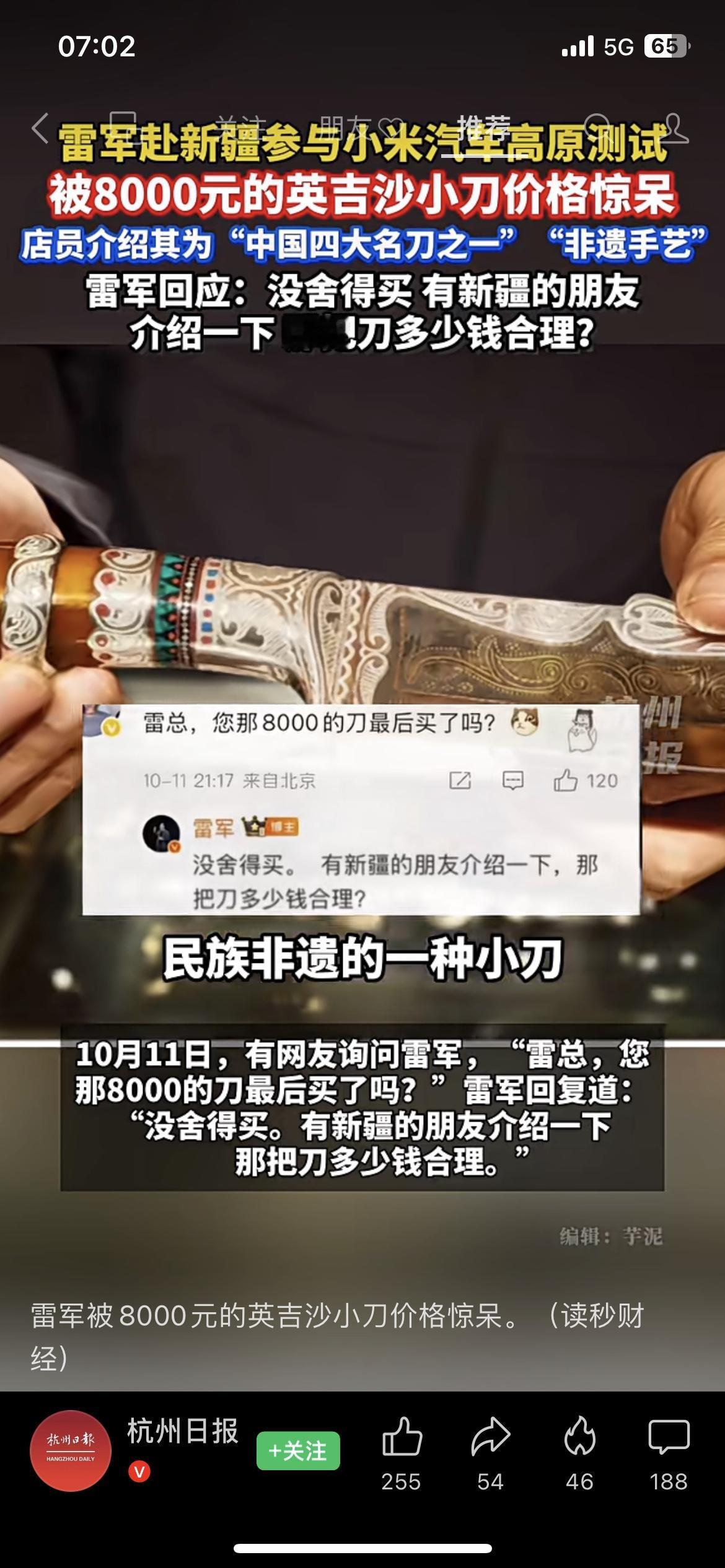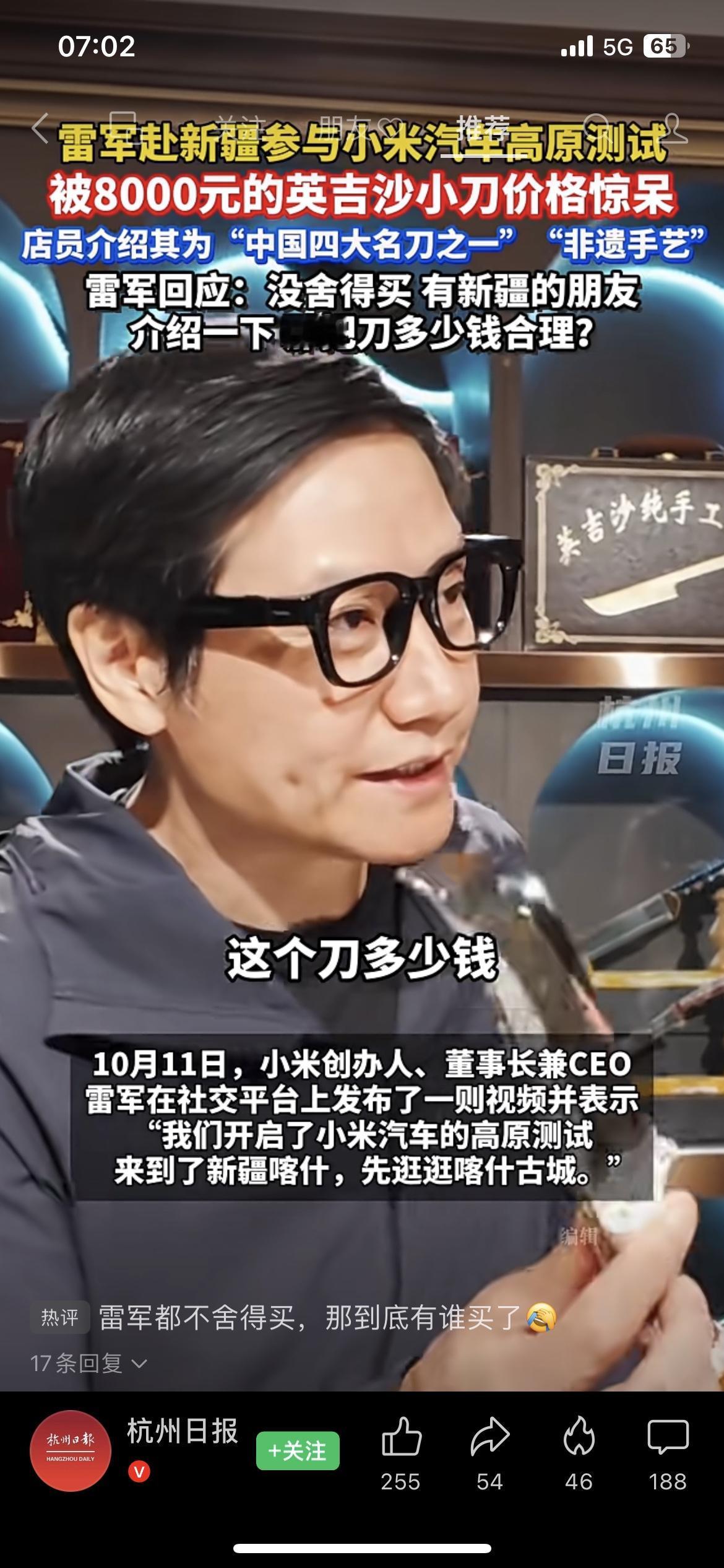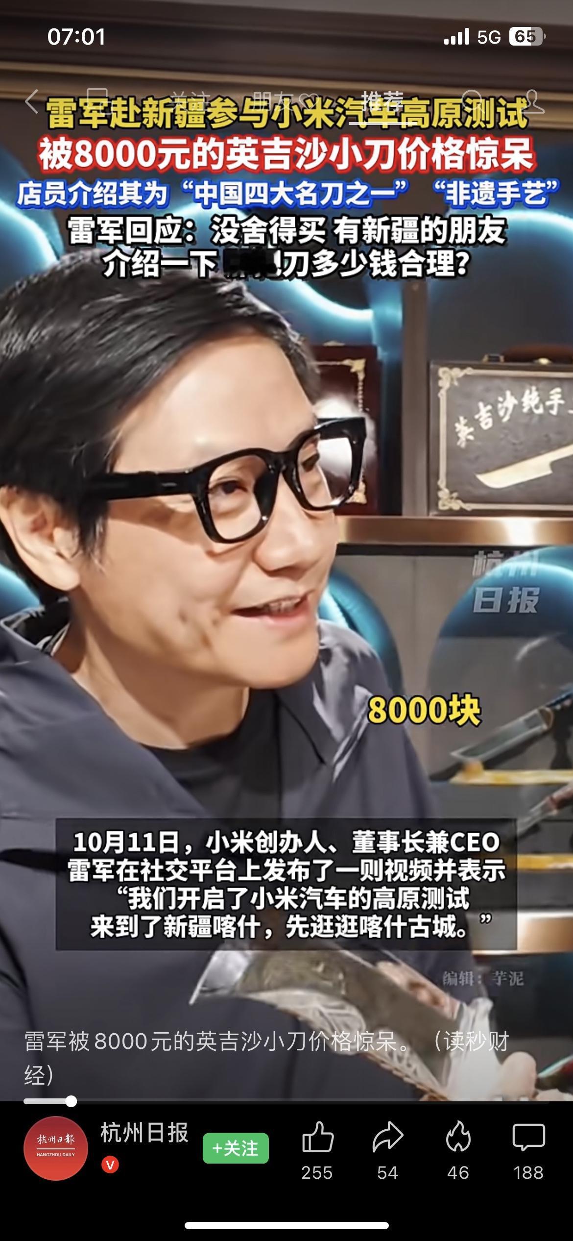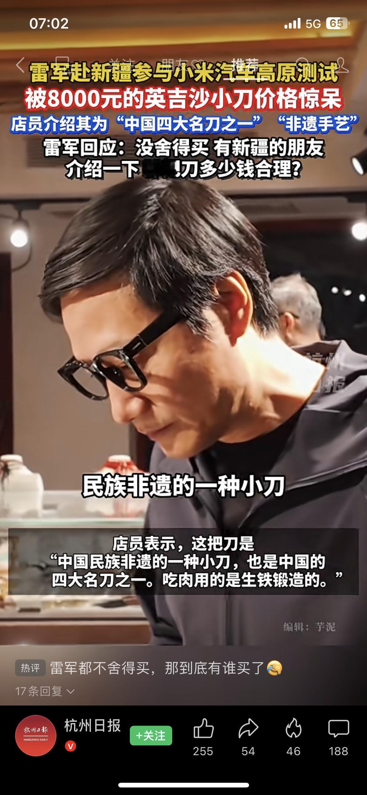 雷军新疆测试小米汽车,被8000元英吉沙小刀惊呆!非遗手艺这价格合理吗? 家人们,雷军去新疆搞小米汽车高原测试,结果被一把英吉沙小刀的价格整懵了!店员说这是中国四大名刀之一的非遗手艺,要8000块,雷军直接"没舍得买",还在线问新疆朋友这价格到底合不合理~ 咱就说,英吉沙小刀的手艺是真绝,非遗传承人的工艺确实值这个价,但8000块对于一把小刀来说,是不是也有点太高了?要知道雷军可是打造出"性价比之王"小米的人,这波被价格惊呆,多少有点反差萌啊! 我觉得吧,非遗手艺的价值不能只看价格,可这定价要是太离谱,普通人也消费不起,非遗传承不就成了空谈?你们觉得英吉沙小刀卖8000块合理不?新疆的朋友快来给雷军(和我们)科普一下,评论区聊聊! 百宝英吉沙小刀