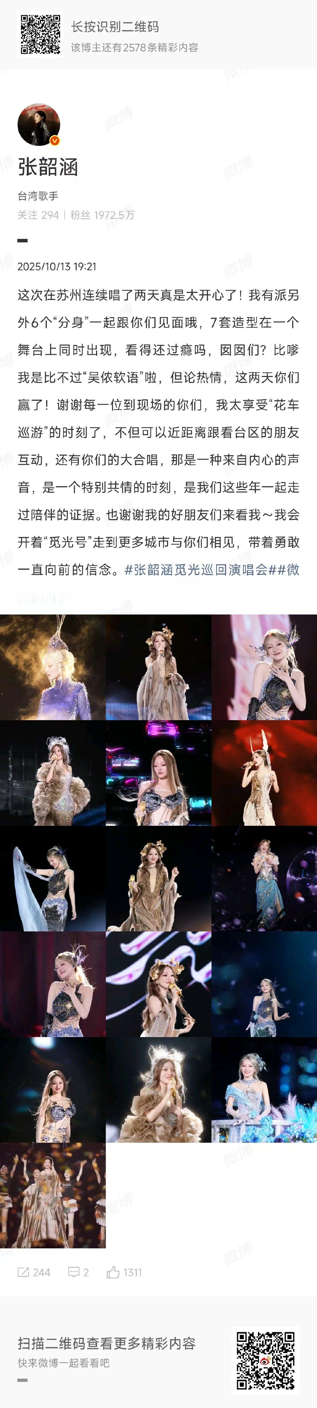 张韶涵演唱会就是一场红毯 张韶涵说比嗲比不过吴侬软语张韶涵说“比嗲我是比不过‘吴侬软语’啦,但论热情,你们赢了!”张韶涵在苏州演唱会的这句调侃太圈粉。她用穿透灵魂的歌声点燃现场,和粉丝的大合唱更是共情到极致,这场充满热情与感动的“觅光”之旅