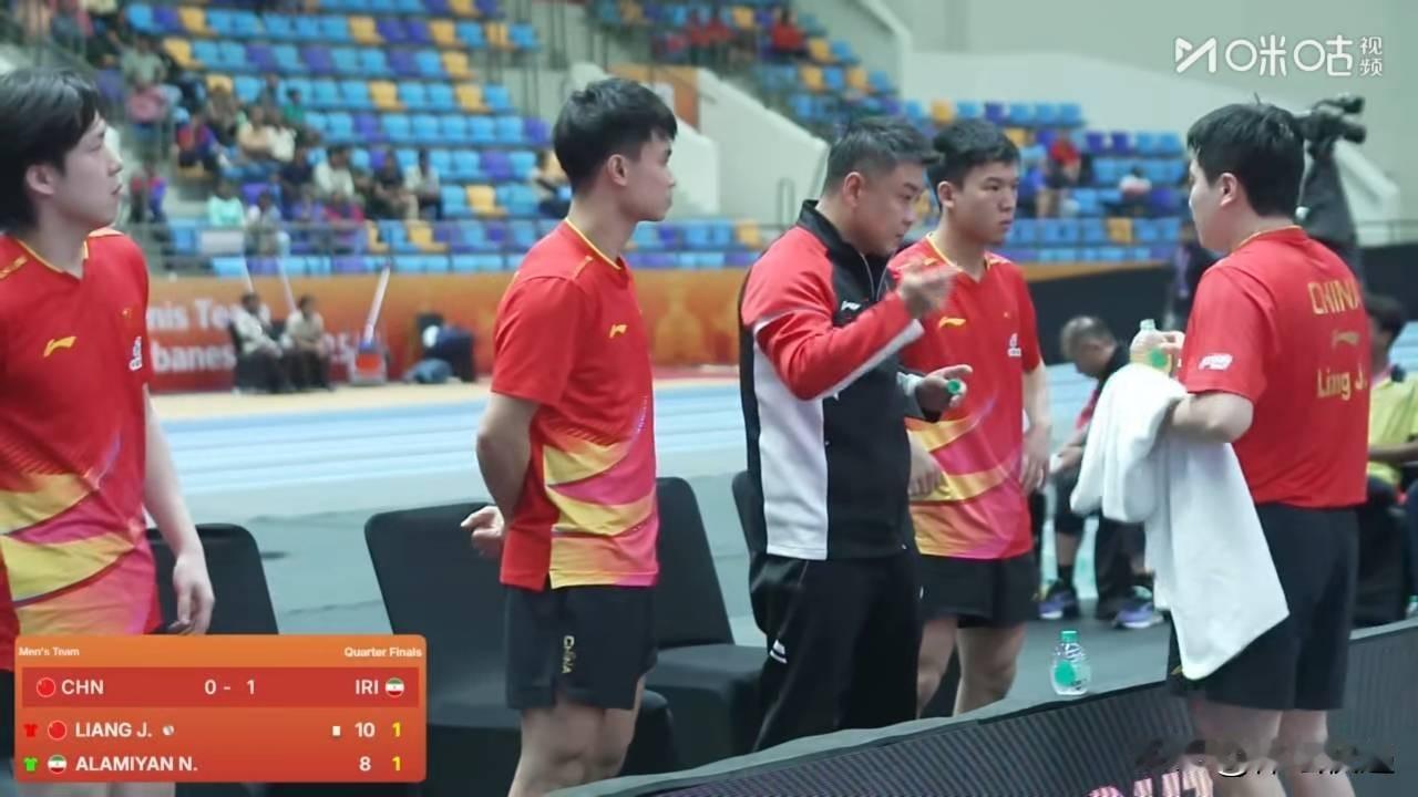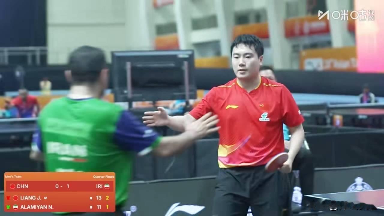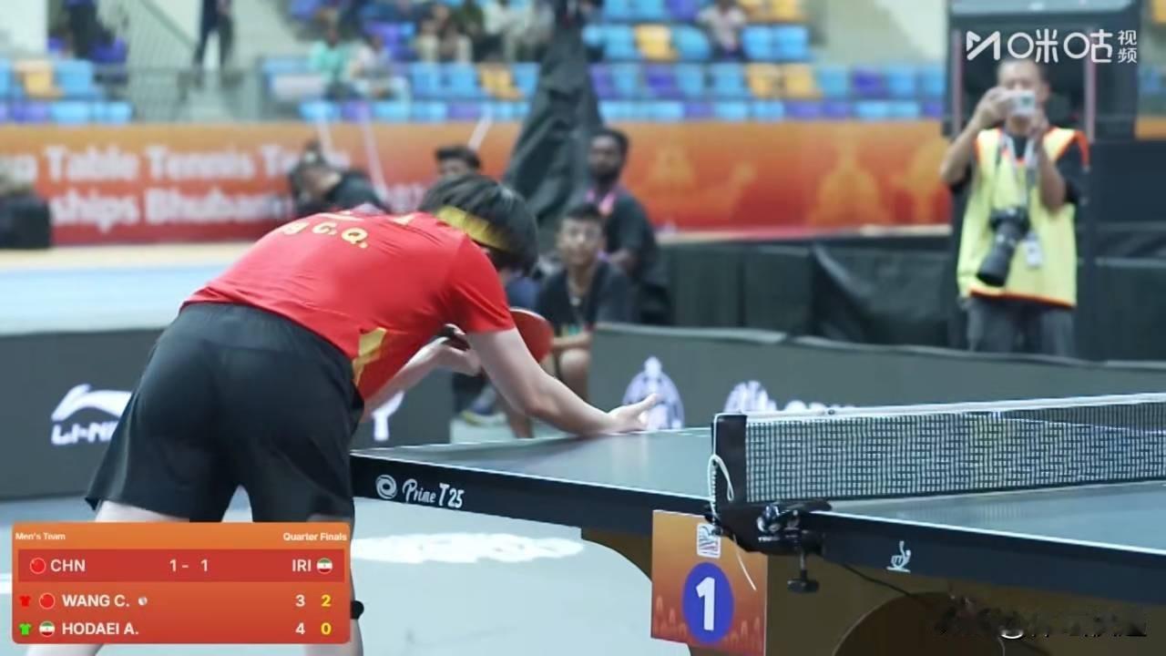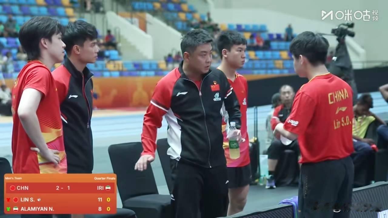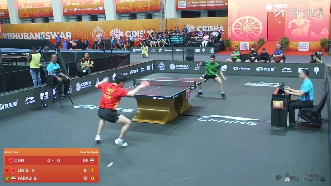 乒乓球亚锦赛四强争夺战,中国男队战胜伊朗队。首盘林诗栋2:3爆冷不敌15岁小将法