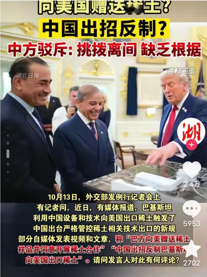 中方回应“巴基斯坦向美出口稀…” 2025年10月13日,在国际社会关注的焦点事件中,一则关于“巴基斯坦利用中国技术向美国赠送稀土”的传闻引发广泛讨论。这条消息一度在网络上迅速传播,甚至引发一些猜测和猜疑。对此,中国外交部发言人林剑在当天的例行记者会上作出了明确回应,坚定地澄清了相关谣言。 在记者提问环节中,面对关于“巴基斯坦是否利用中国技术向美国赠送稀土”的传闻,林剑发言人沉稳而清晰地表达了中国政府的立场。他指出,这些报道要么是对事实的不了解,要么是捕风捉影,甚至可能是一些别有用心的挑拨离间行为。林剑强调,这些传闻缺乏任何可靠的根据,没有事实依据,纯属无中生有。 这一回应不仅体现了中国政府对虚假信息的坚决态度,也彰显了中国在国际合作中的真实立场。近年来,随着全球资源争夺愈发激烈,稀土元素作为现代科技和新能源产业的重要原材料,成为国际间关注的焦点。中国作为全球主要稀土资源供应国,始终坚持公平、合作、共赢的原则,积极推动稀土产业的健康发展。 实际上,稀土资源的开发与利用涉及多个国家和地区,合作与竞争并存。巴基斯坦作为中国的重要合作伙伴,一直在基础设施建设、能源开发等多个领域与中国保持密切合作。关于稀土技术转让或合作项目,双方都强调了透明和合法的原则,没有任何迹象表明存在非法或不正当的技术转让行为。 此次关于“巴基斯坦利用中国技术向美国赠送稀土”的传闻,显然是一些别有用心的人刻意制造的谣言,旨在混淆视听,挑拨中巴之间的合作关系,甚至试图在国际舞台上制造不安。这种行为不仅损害了中巴合作的良好氛围,也影响了中国与其他国家之间的信任基础。 中国一贯坚持多边主义和合作共赢的国际关系理念。我们相信,通过对话和合作,任何关于技术转让或资源合作的问题都可以以正面、透明的方式解决。中国愿意与包括巴基斯坦在内的各国携手合作,共同推动全球资源的合理利用与可持续发展,为世界的繁荣与稳定作出积极贡献。 此外,值得一提的是,这类虚假传闻的背后,往往隐藏着一些别有用心的政治图谋。某些国家或势力可能试图借此制造分裂,抹黑中国的国际形象,甚至干扰国际合作的正常推进。对此,我们必须保持清醒头脑,不被谣言左右,坚定维护国家利益和合作伙伴的信任。 在全球化的今天,各国之间的合作日益紧密,资源共享成为推动科技进步和经济发展的关键。中国始终坚持开放包容的态度,推动与世界各国的合作共赢。无论是稀土产业链的合作,还是其他领域的交流,都在遵循公平、合法、透明的原则下进行。 面对各种传闻和误解,中国政府和外交部都一贯以事实为依据,以理性回应公众关切。我们相信,通过加强沟通、增进理解,可以消除误会,促进合作关系的稳固发展。中国愿意与所有合作伙伴一道,共同应对全球资源与科技的挑战,为构建一个更加和平、繁荣、稳定的国际环境而努力。 最后,提醒公众在面对各类信息时,要保持理性和警惕。不轻信未经证实的消息,避免成为不良信息的传播者。只有坚持实事求是,才能共同营造一个健康、和谐的网络空间,也为国际合作营造良好的氛围。 关于“巴基斯坦利用中国技术向美国赠送稀土”的传闻,毫无疑问是无根据的谣言。中国外交部发言人的明确回应再次证明了中国的立场:我们坚决反对任何形式的谣言和挑拨,愿与各方一道,携手共创合作共赢的美好未来。 贸易 中国稀土