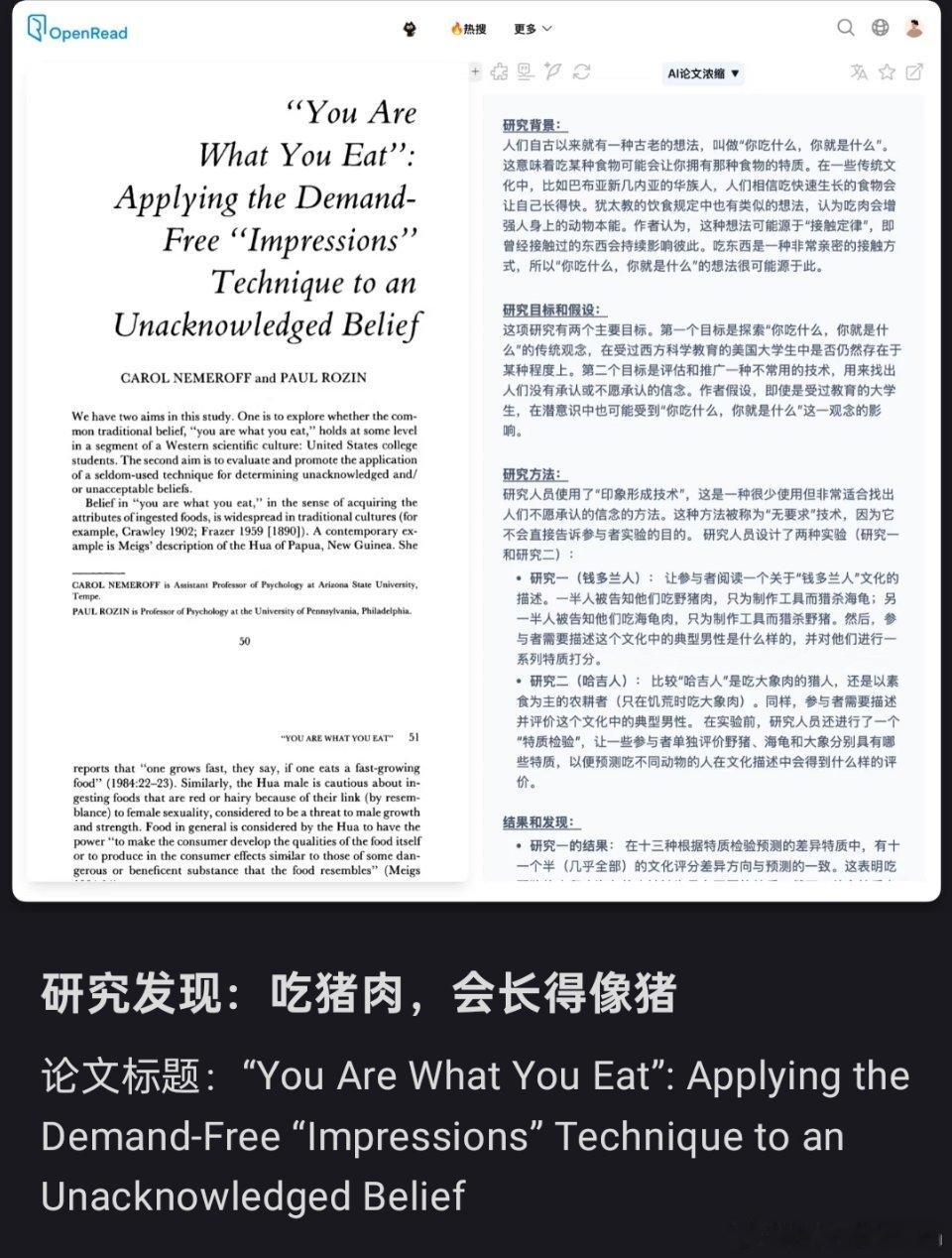 一篇论文研究发现:吃猪肉,会长得像猪。