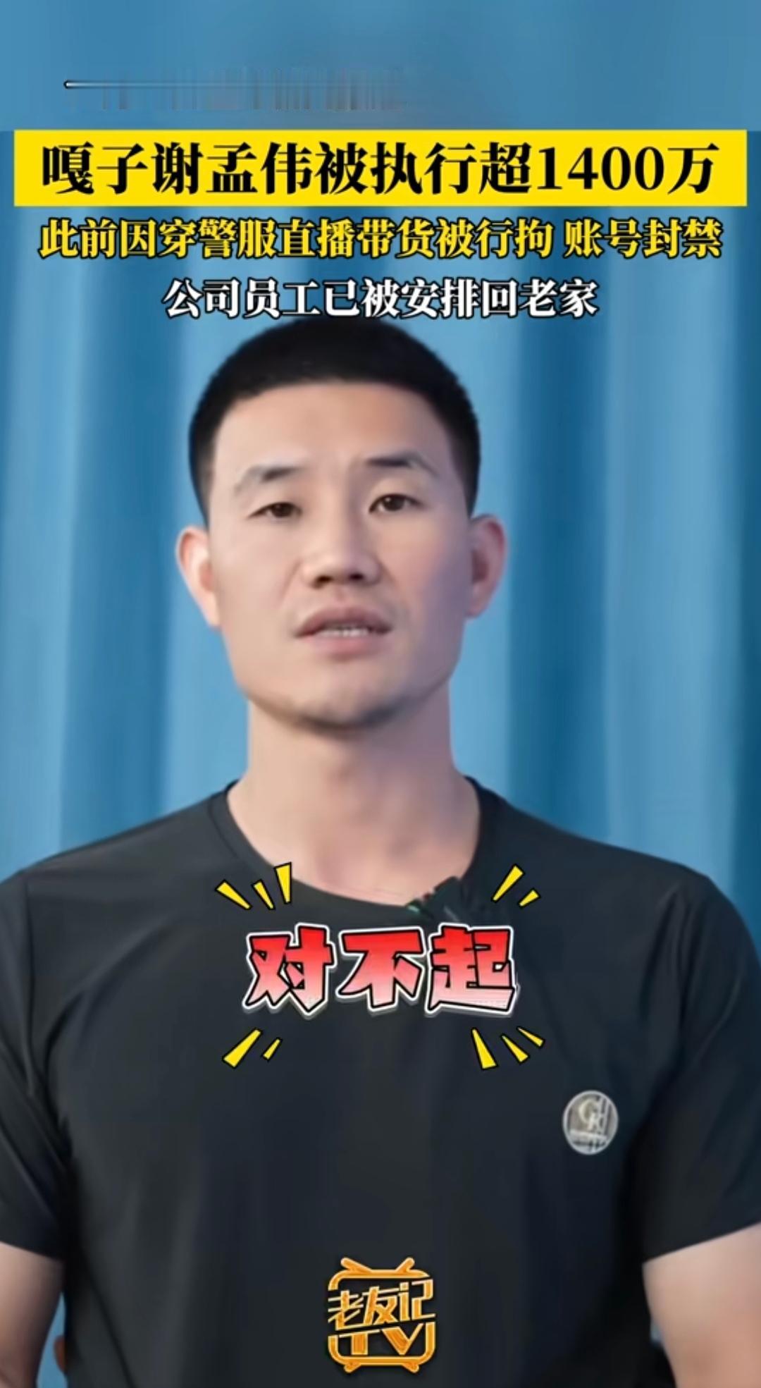 嘎子谢孟伟终究是没有把握住这水深的直播带货,小时候演电视“装”八路,长大后直播装警察,账号被封禁后,因为各种合同纠纷和赔偿,他现在已经被执行超1400万。 说起来,嘎子走到今天这一步,完全是步步走错的结果。为了赚快钱,把前程都搭进去了。扎进直播圈,把路走歪了,靠消耗情怀终究走不远,触碰法律底线必定要付出代价。如果不回头,这只是开始! 嘎子谢孟伟 嘎子哥 谢孟伟