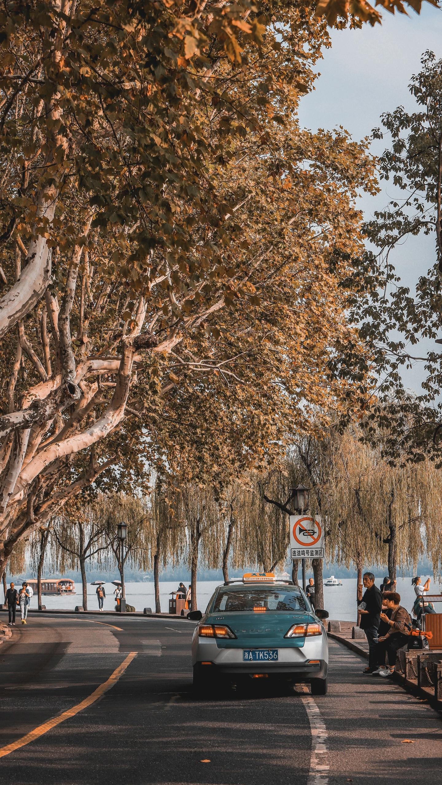 浪漫西湖秋日·西泠桥与1314路公交拍摄攻略。🍂 在西湖的西泠桥转角,等一辆名为‘一生一世’的公交,驶过金色的梧桐隧道。