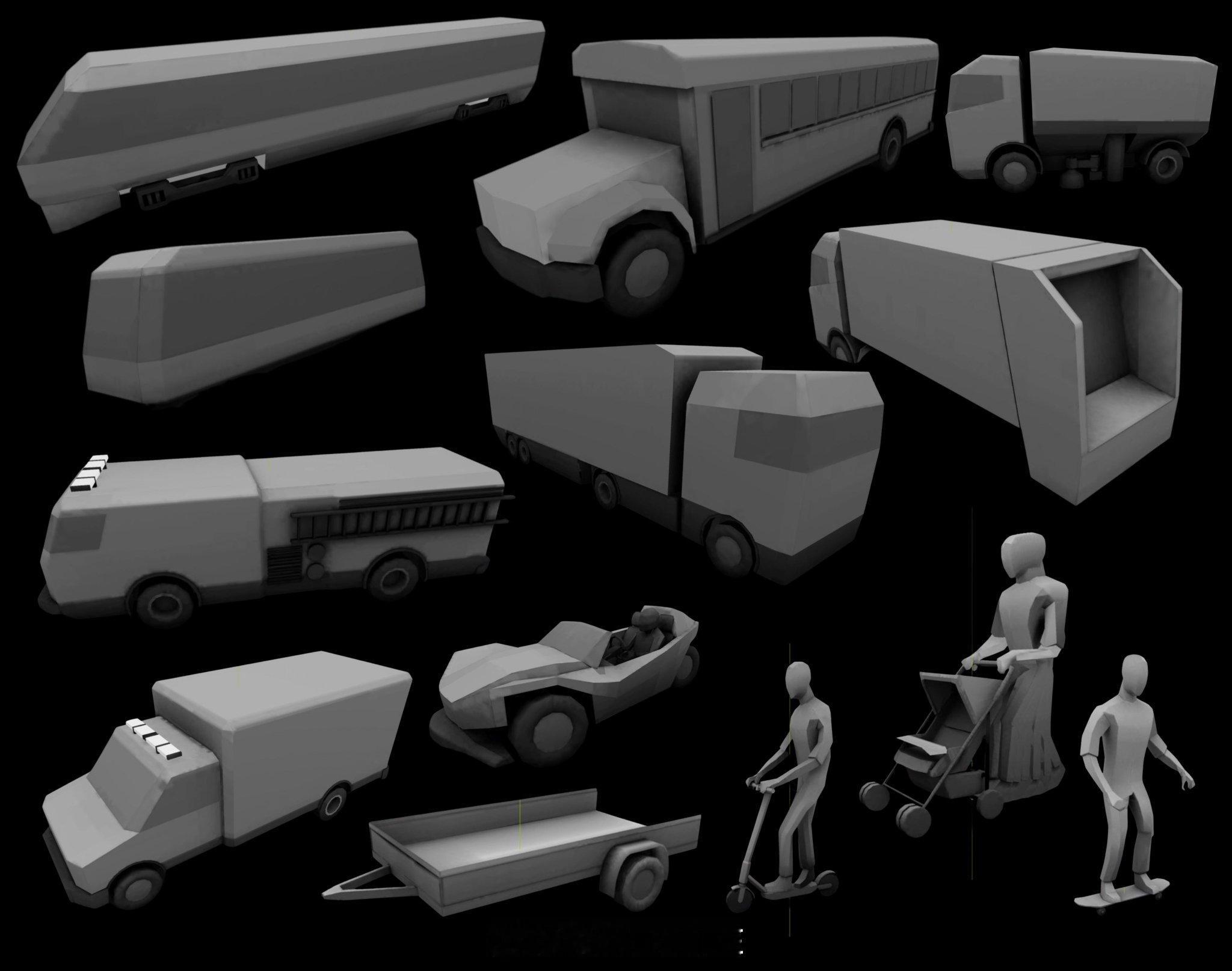 新的模型包括:救护车、消防车、垃圾车、校车、半挂卡车、高尔夫球车、步行式代步车、坐轮椅的行人、行人骑行滑板、带婴儿车的行人、街道清扫工、三轮车、火车、电车..