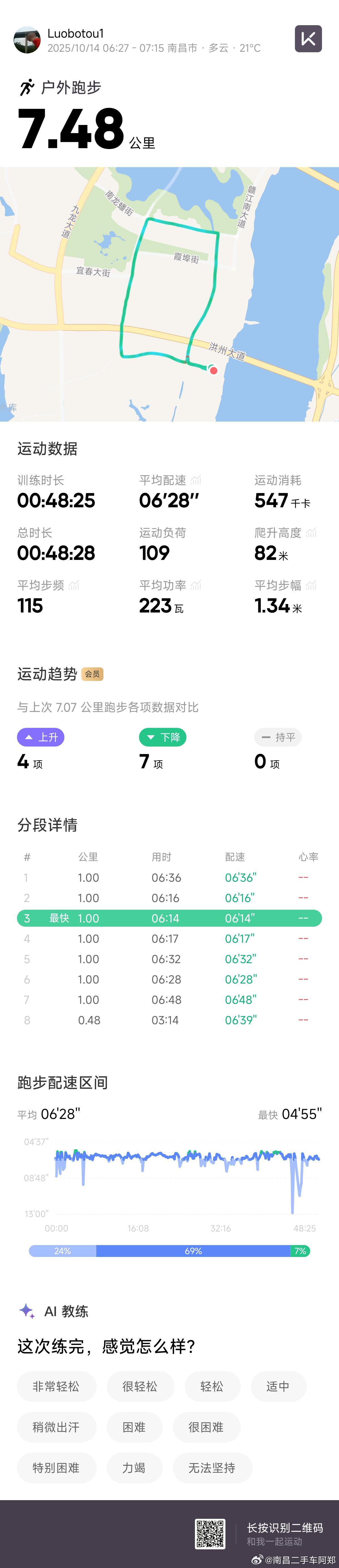 夜跑打卡完成……已练不欠,国庆9天,跑了4次[努力][努力][努力]